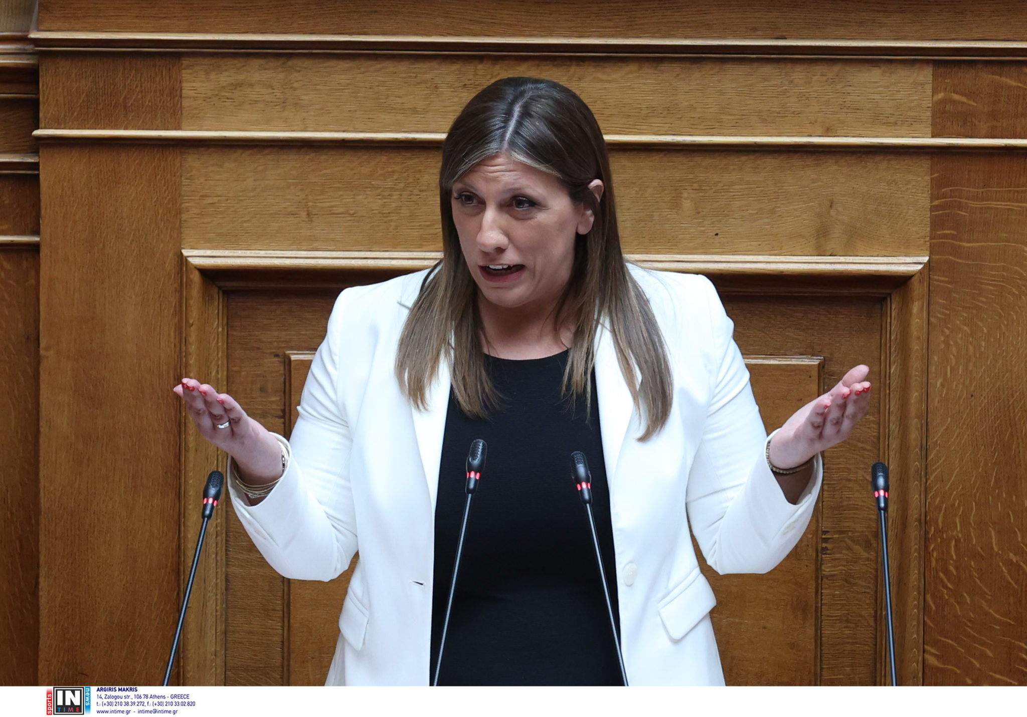 Κατηγόρησε την κυβέρνηση ότι «έχει ποδοπατήσει τη Δημοκρατία» και τόνισε ότι «οι συγγενείς των θυμάτων του εγκλήματος των Τεμπών σας κατηγορούν για αυτή την υπονόμευση του πολιτεύματος». Για την πρόταση σύστασης προανακριτικής επιτροπής, «που προέρχεται από τα θύματα» και συνυπέγραψε το κόμμα της, είπε ότι είναι «η πρώτη φορά στα χρονικά, σε όλη τη μεταπολίτευση, που έρχεται μέσα στη Βουλή… πρόταση που προέρχεται από την κοινωνία, τους πολίτες».