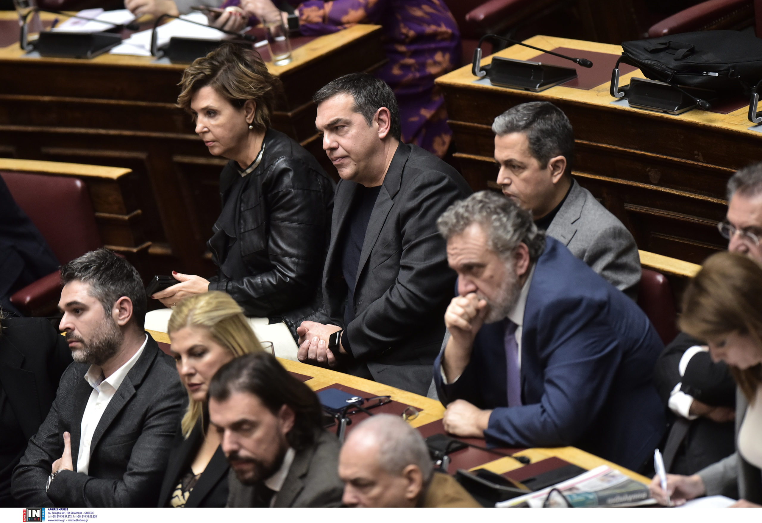 Δίπλα στον Αλέξη Τσίπρα κάθισαν η Όλγα Γεροβασίλη και ο Χάρης Μαμουλάκης. Στα στιγμιότυπα ο πρώην πρόεδρος του ΣΥΡΙΖΑ φαίνεται σκυθρωπός και προβληματισμένος.