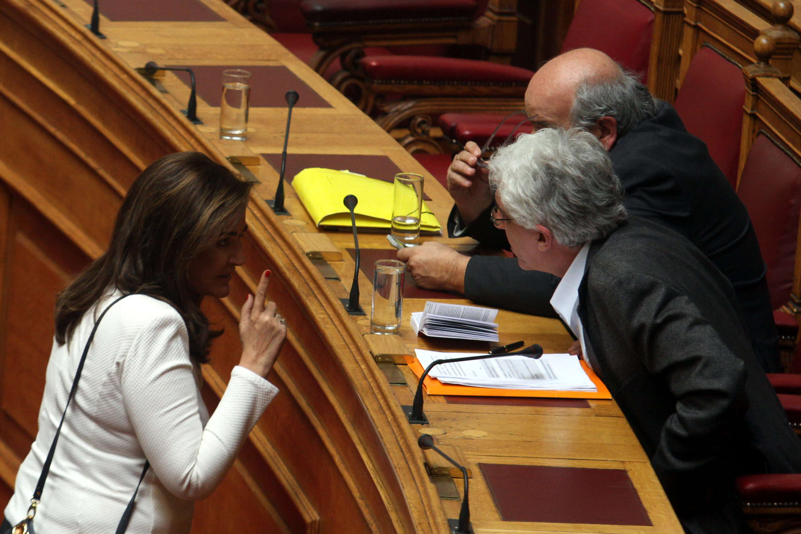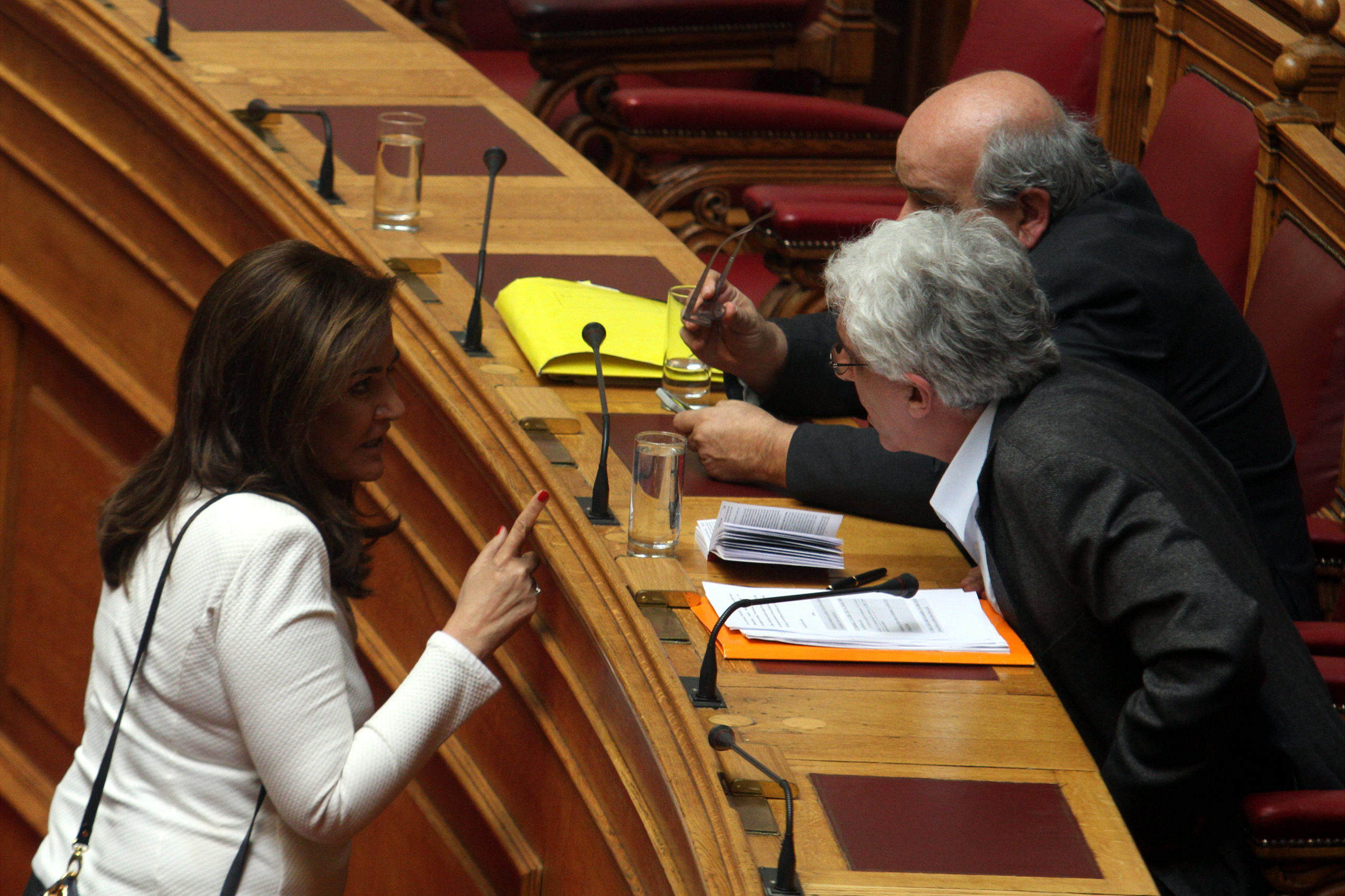 Τα Κυβερνητικά έδρανα πλησίασε η βουλευτής της Νέας Δημοκρατίας, Ντόρα Μπακογιάννη κατά τη συζήτηση που διεξάγεται στη Βουλή επί του σχεδίου νόμου: «Μεταρρυθμίσεις ποινικών διατάξεων, κατάργηση των καταστημάτων κράτησης Γ΄ τύπου και άλλες διατάξεις».
