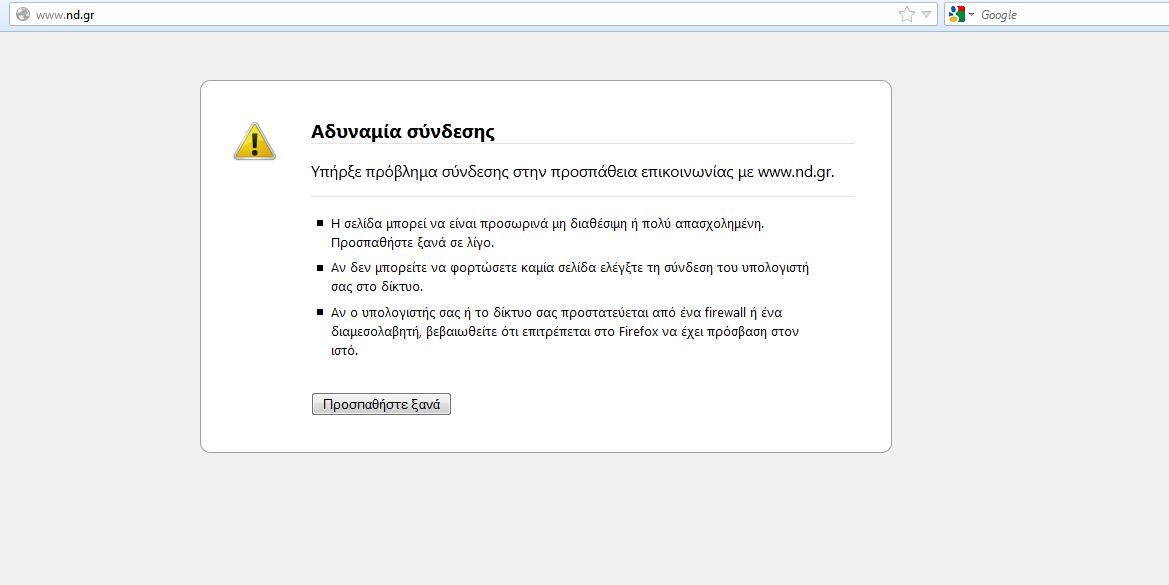 Εκτός λειτουργίας βρίσκονται εδώ και λίγη ώρα οι ιστοσελίδες της Νέας Δημοκρατίας και του ΠΑΣΟΚ.