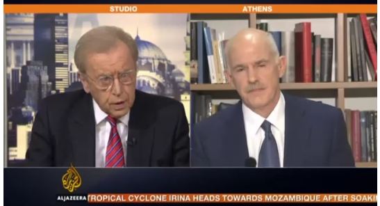 -“Πολλοί απομονώνουν το Ελληνικό πρόβλημα. Έχουμε βεβαίως την ευθύνη και πληρώνουμε για αυτό. Δεν είναι όμως η Ελληνική κρίση το πρόβλημα, είναι κρίση στην Ευρωζώνη, στην παγκόσμια οικονομία. Και το θέμα δεν είναι αν θα μείνει η Ελλάδα στο ευρώ, αλλά να επιβιώσει το ευρώ”.