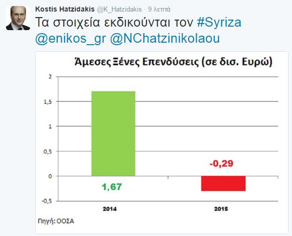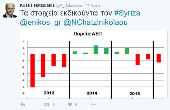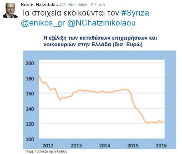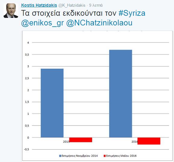 Διαγράμματα με στοιχεία της ελληνικής οικονομίας από το 2013 μέχρι σήμερα ανέβασε στον προσωπικό του λογαριασμό στο Twitter, ο αντιπρόεδρος της Νέας Δημοκρατίας, Κωστής Χατζηδάκης, επισημαίνοντας ότι τα στοιχεία εκδικούνται τον ΣΥΡΙΖΑ.
