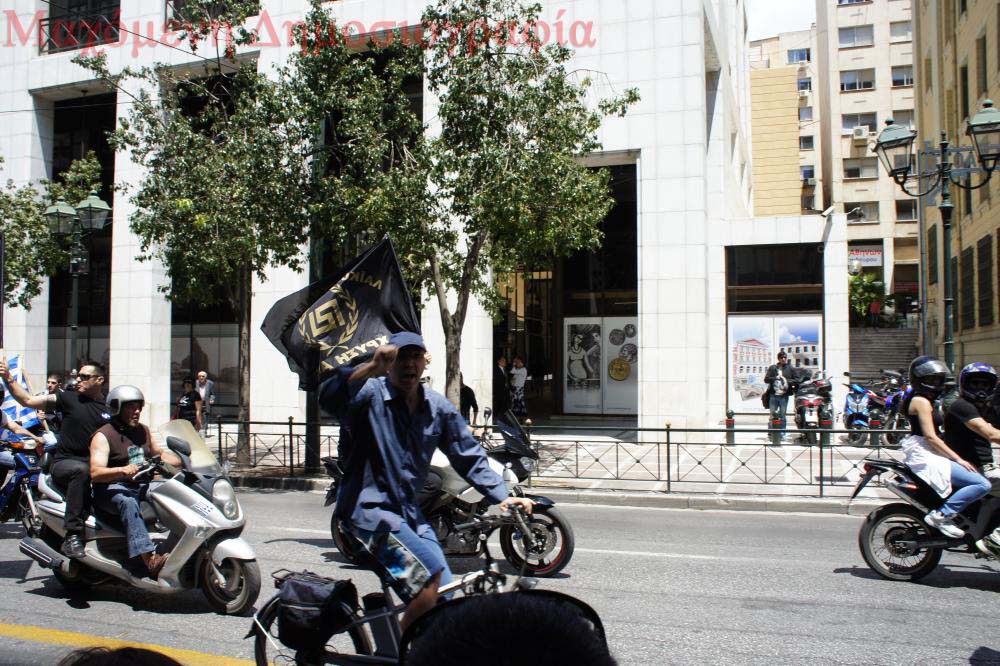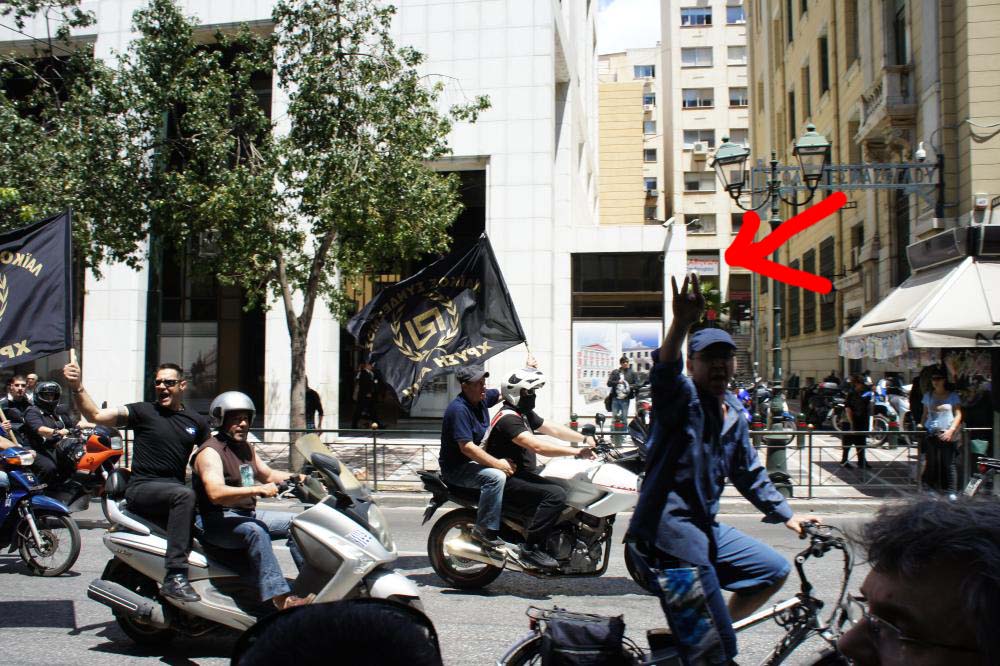 Σύμφωνα με όσα καταγγέλουν δημοσιογράφοι, που συμμετείχαν στη συγκέντρωση, μέλη της Χρυσής Αυγής, πέρασαν από το σημείο με μηχανάκια, χαιρετώντας ναζιστικά και κάνοντας άσεμνες χειρονομίες προς το μέρος τους.