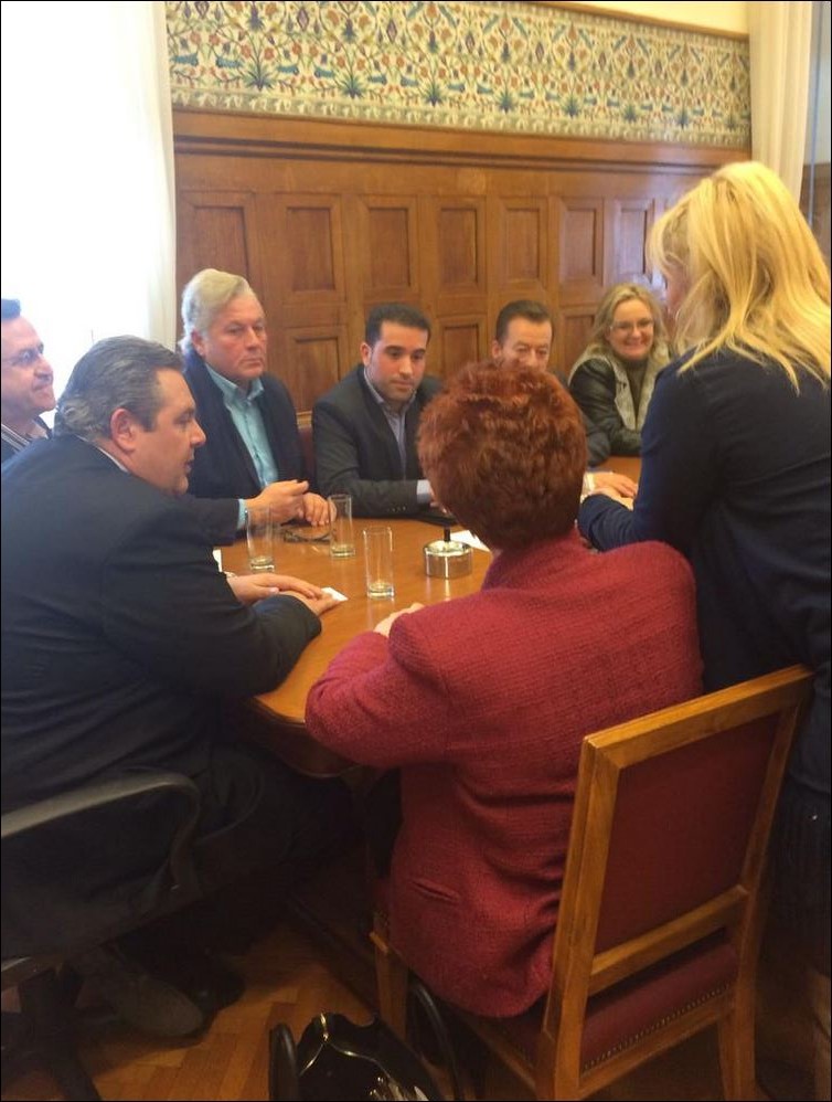 Σε εξέλιξη βρίσκεται η συνεδρίαση της Κοινοβουλευτικής Ομάδας των Ανεξαρτήτων Ελλήνων στη διάρκεια της οποίας θα τεθεί το θέμα του ονόματος του υποψηφίου για την Προεδρία της Δημοκρατίας. Ο Πάνος Καμμένος ζήτησε από τους βουλευτές πριν από την έναρξη της συνεδρίασης να παραδώσουν τα κινητά τους, προφανώς για να μην υπάρχουν διαρροές σχετικά με το όνομα του υποψηφίου για την Προεδρία της Δημοκρατίας. Έτσι μια γραμματέας μάζεψε τα κινητά των βουλευτών, τα έβαλε σε ένα τσαντάκι τα έβγαλε έξω από την αίθουσα.