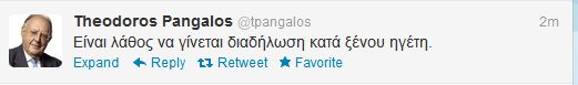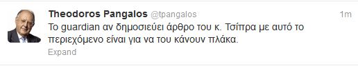 Για τις σημερινές διαδηλώσεις και τη συνέντευξη του Αλέξη Τσίπρα στον Guardian “τιτίβισε” πριν από λίγο ο Θεόδωρος Πάγκαλος…Δείτε τα tweets: