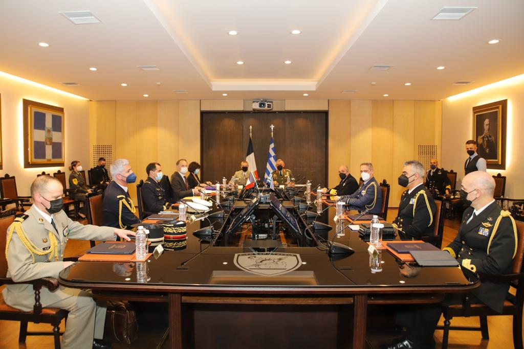 Ακόμη ένα κεφάλαιο στις ελληνογαλλικές σχέσεις γράφτηκε με χρυσά γράμματα σήμερα το πρωί στο ελληνικό πεντάγωνο. Ο Αρχηγός ΓΕΕΘΑ, Στρατηγός Κωνσταντίνος Φλώρος υποδέχθηκε τον Αρχηγό του Επιτελείου Άμυνας της Γαλλίας Στρατηγό Thierry Burkhard στο ΓΕΕΘΑ, στο πλαίσιο επίσημης επίσκεψής του στην Αθήνα, που πραγματοποιήθηκε σε συνέχεια και ανταπόδοση της επίσκεψης του Αρχηγού ΓΕΕΘΑ στην Γαλλία τον Οκτώβριο 2021.