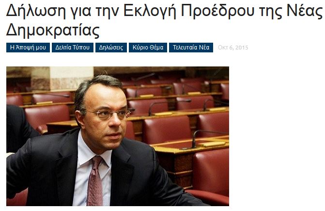 Σε ότι με αφορά, ως μέλος και Βουλευτής, απορρίπτοντας το ρόλο του «επιτήδειου ουδέτερου», και σταθμίζοντας τις ανάγκες της χώρας και του Κόμματος, τους αντικειμενικούς περιορισμούς και τα πολιτικά χαρακτηριστικά των υποψηφίων, προκρίνω την υποψηφιότητα του κ. Ευάγγελου Μεϊμαράκη.