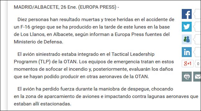 Λίγο νωρίτερα εκπρόσωπος του υπουργείου Άμυνας της Ισπανίας είχε πει στο Γαλλικό Πρακτορείο πως δεν ήταν σε θέση να επιβεβαιώσει την πληροφορία πως οι δύο χειριστές της ελληνικής ΠΑ έχουν βρει τον θάνατο, την οποία μετέδωσαν ισπανικά ΜΜΕ.