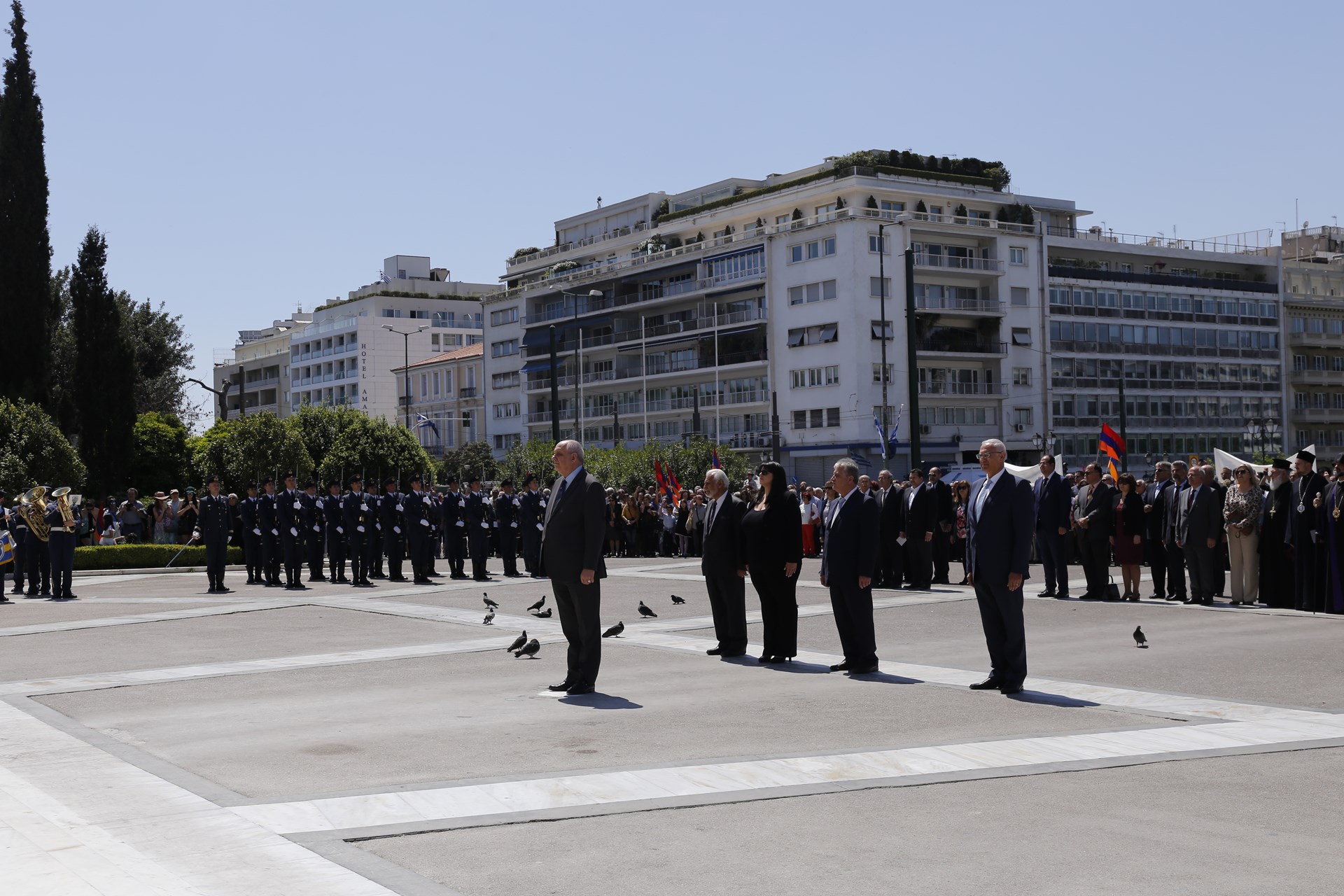 Στεφάνι κατέθεσαν οι εκπρόσωποι της Ελληνικής Κυβέρνησης, της Βουλής των Ελλήνων, της Περιφέρειας Αττικής, του Δήμου Αθηναίων, ο τ. Υπουργός Εξωτερικών της Κύπρου κ. Ιωάννης Κασουλίδης, ο Συντονιστής Αποκεντρωμένης Διοίκησης Αττικής, καθώς επίσης, ο Πρέσβης της Κυπριακής Δημοκρατίας, η Πρέσβης της Κροατίας, ο Επιτετραμμένος της Πρεσβείας της Δημοκρατίας της Αρμενίας, οι πρόεδροι της Παμποντιακής Ομοσπονδίας Ελλάδος και της Ένωσης Ασσυρίων Ελλάδος, και ο εκπρόσωπος της Αρμενικής Κοινότητας της Ελλάδος.