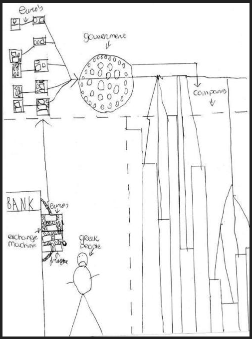 Ένας 10χρονος “οικονομολόγος” προτείνει λύση στο πρόβλημα της ελληνικής οικονομικής κρίσης. Εκείνος θεωρεί πως η Ελλάδα πρέπει να εγκαταλείψει το ευρώ και ζωγραφίζει τον τρόπο. Σύμφωνα με το σχέδιο του, οι Έλληνες οφείλουν να πάνε τα ευρώ στις τράπεζες και να τα ανταλλάξουν με δραχμές. Όποιος αρνηθεί να το κάνει, θα τιμωρείται με πρόστιμο, ίσο με το διπλάσιο του ποσού που αρνούνται να ανταλλάξουν. Έτσι, με τα ευρώ που θα έχουν μαζευτεί από την ανταλλαγή, η Ελλάδα θα πληρώσει το χρέος της. Σε διαγωνισμό που διοργάνωσε ο Simon Wolfson, με θέμα την πρόταση για την λιγότερο οδυνηρή λύση για τον τερματισμό του ευρώ, ο 10χρονος, Hurre Hermans, έχει κλέψει την παράσταση με την ιδέα του.