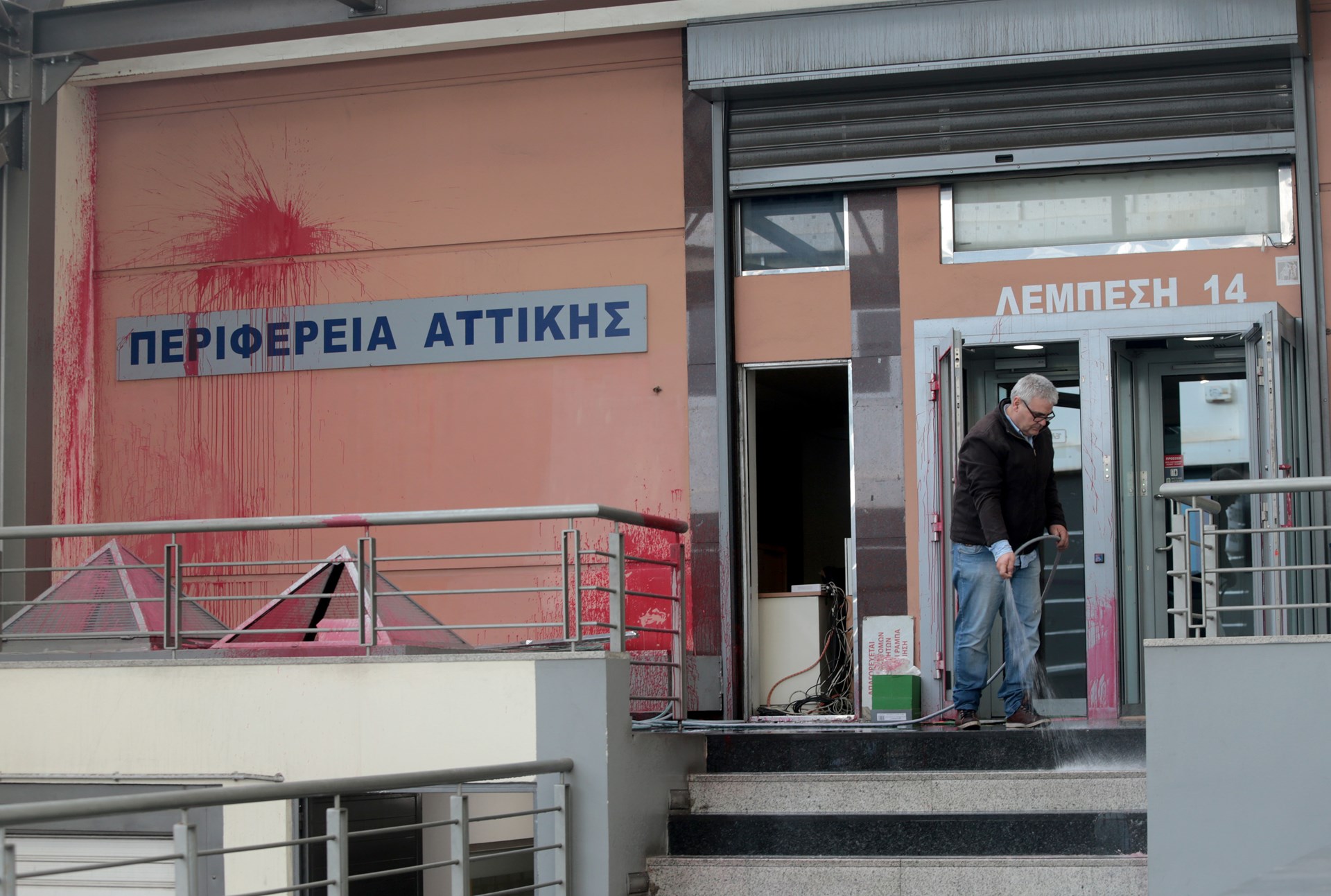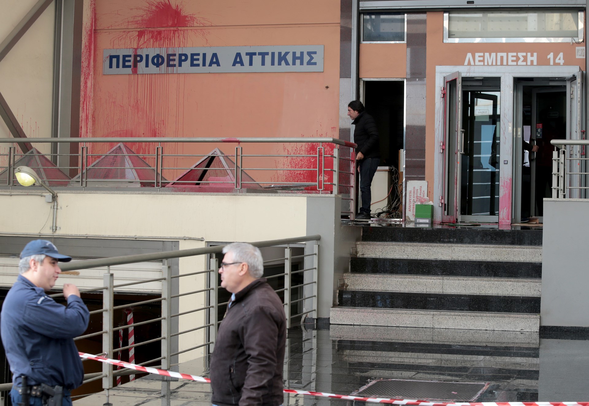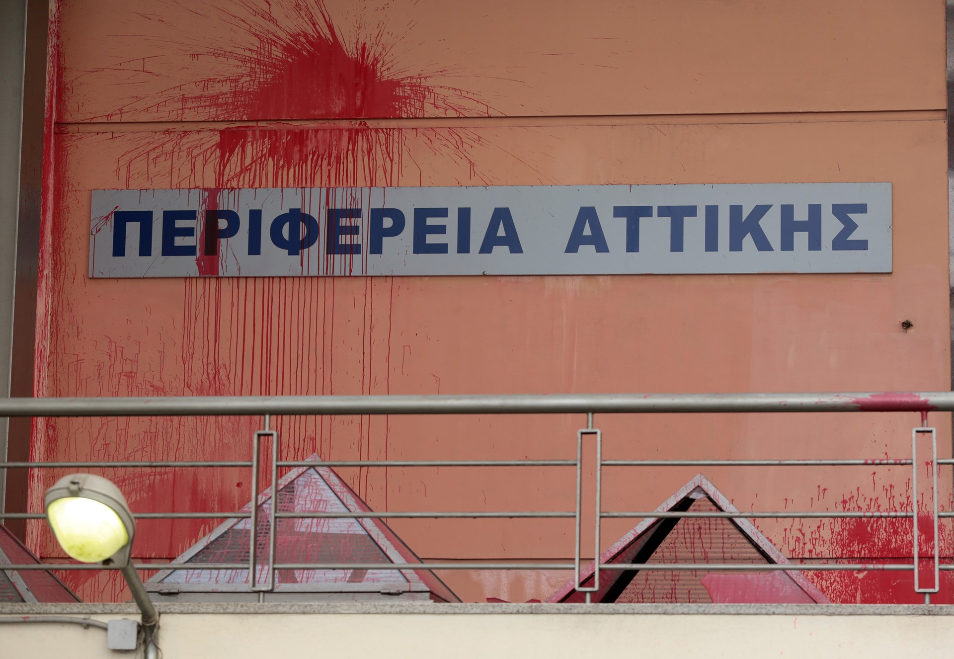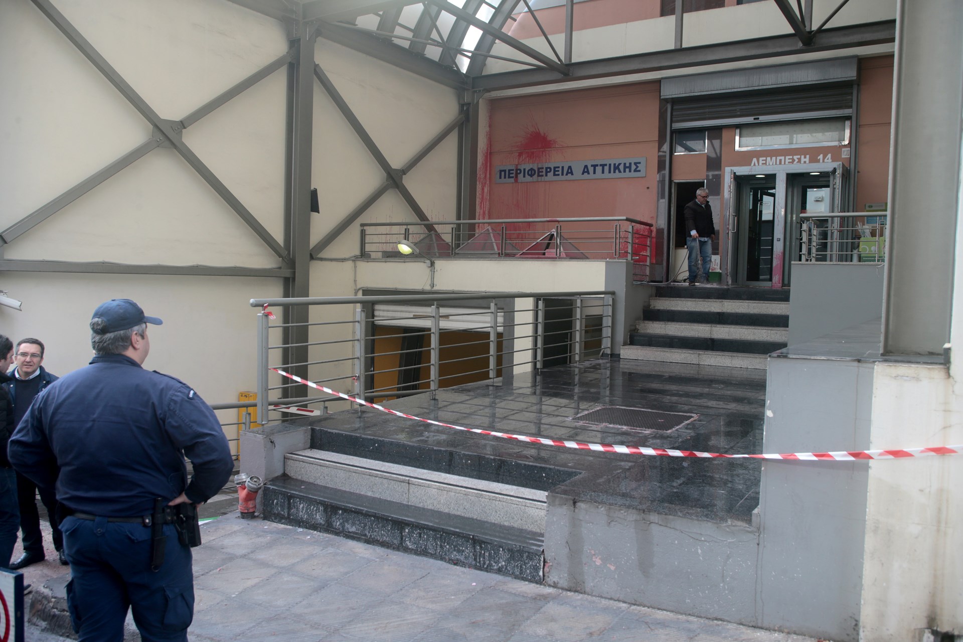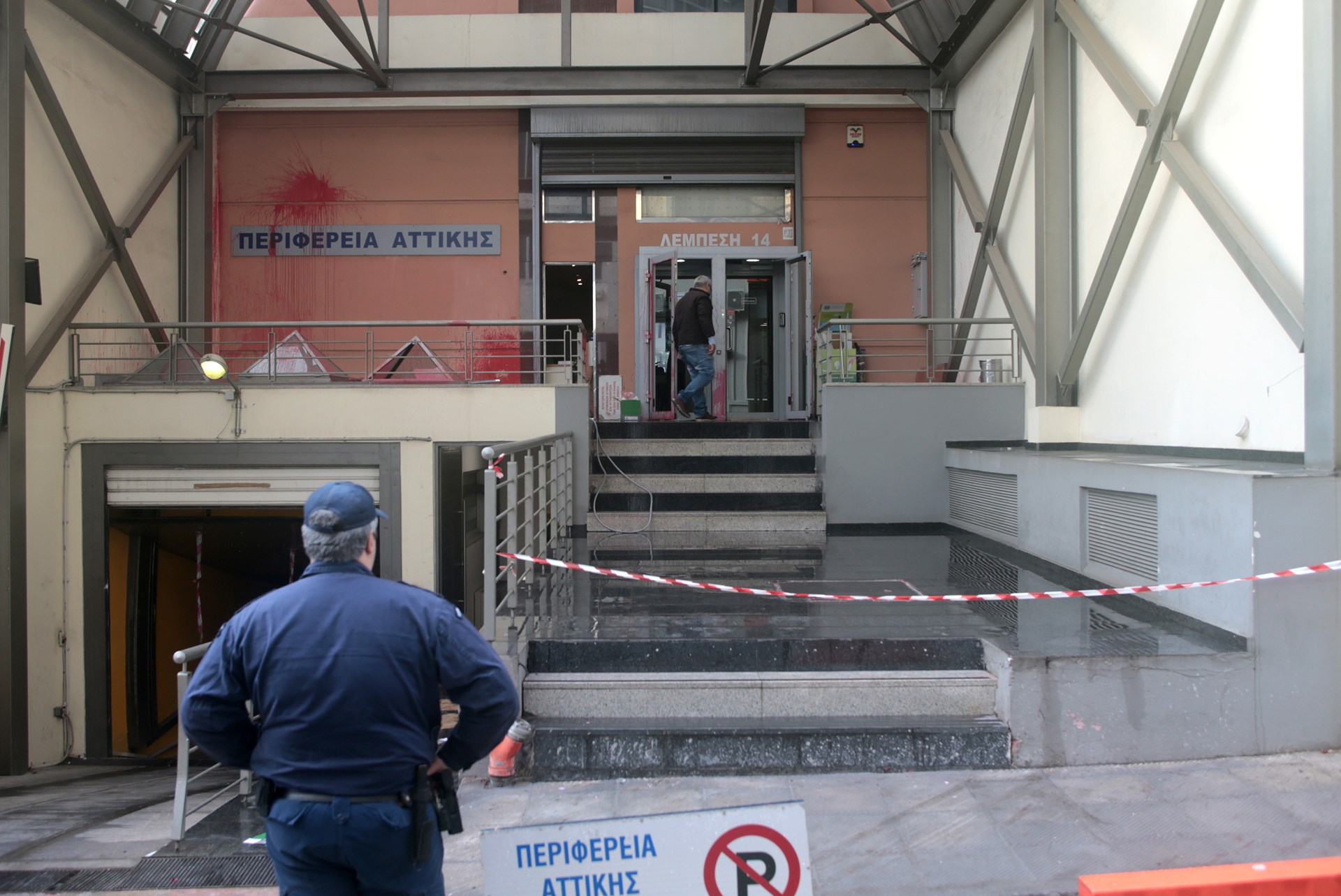 Φθορές στην είσοδο και το εσωτερικό της Περιφέρειας Αττικής προκάλεσαν το πρωί μέλη του Ρουβίκωνα, σπάζοντας τις τζαμαρίες και πετώντας μπογιές στο κτίριο.