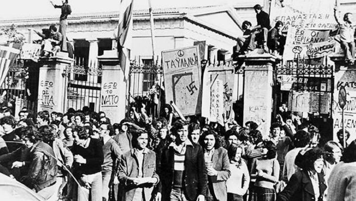 Η Εξέγερση του Πολυτεχνείου το Νοέμβριο του 1973 ήταν η κορυφαία αντιδικτατορική εκδήλωση και ουσιαστικά προανήγγειλε την πτώση της Χούντας των Συνταγματαρχών, η οποία από τις 21 Απριλίου 1967 είχε επιβάλλει καθεστώς στυγνής δικτατορίας στη χώρα.