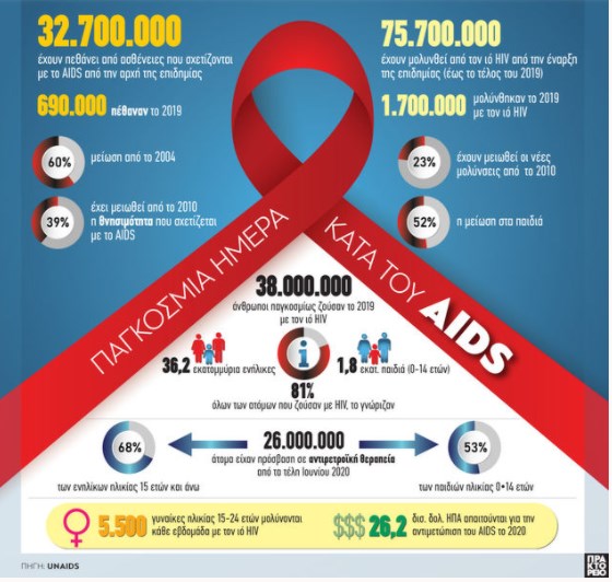 Ο φετινός εορτασμός της Παγκόσμιας Ημέρας κατά του AIDS την 1η Δεκεμβρίου 2020 με θέμα «Παγκόσμια Αλληλεγγύη, Κοινή Ευθύνη» βρίσκει την διεθνή κοινότητα εν μέσω της πανδημίας του SARS-COV-2. «Ωστόσο, το διαρκές διακύβευμα της παγκόσμιας αλληλεγγύης και της κοινής ευθύνης για τις μεταδιδόμενες λοιμώξεις παραμένει, όπως και οι στόχοι μας ως χώρα παραμένουν ταυτόσημοι με τους στόχους του προγράμματος των Ηνωμένων Εθνών (UNAIDS) για την εξάλειψη της επιδημίας μέχρι το 2030», αναφέρει ο Εθνικός Οργανισμός Δημόσιας Υγείας (ΕΟΔΥ).