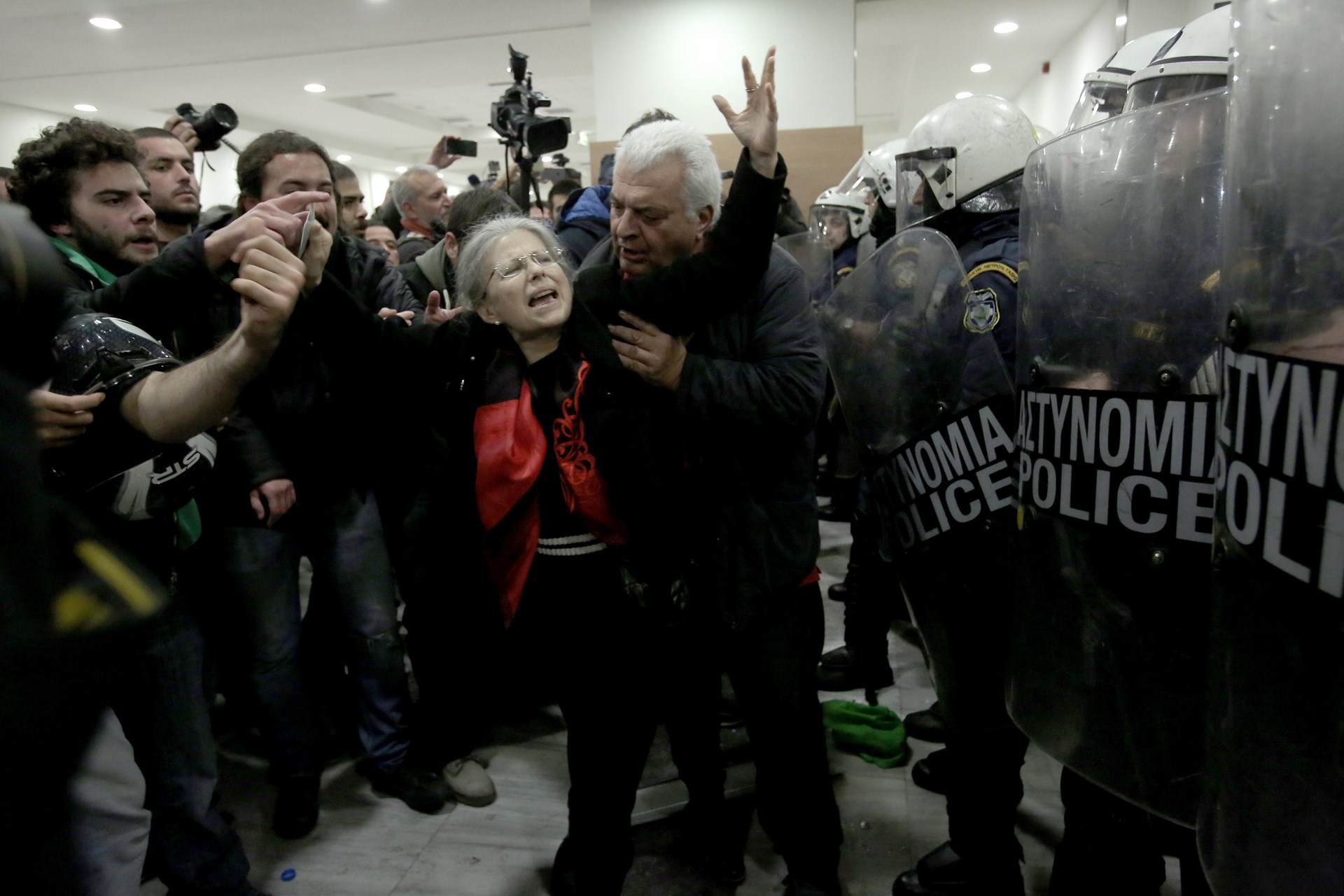 Οι αστυνομικοί προκειμένου να εμποδίσουν την είσοδο των διαδηλωτών έκαναν χρήση χημικών.