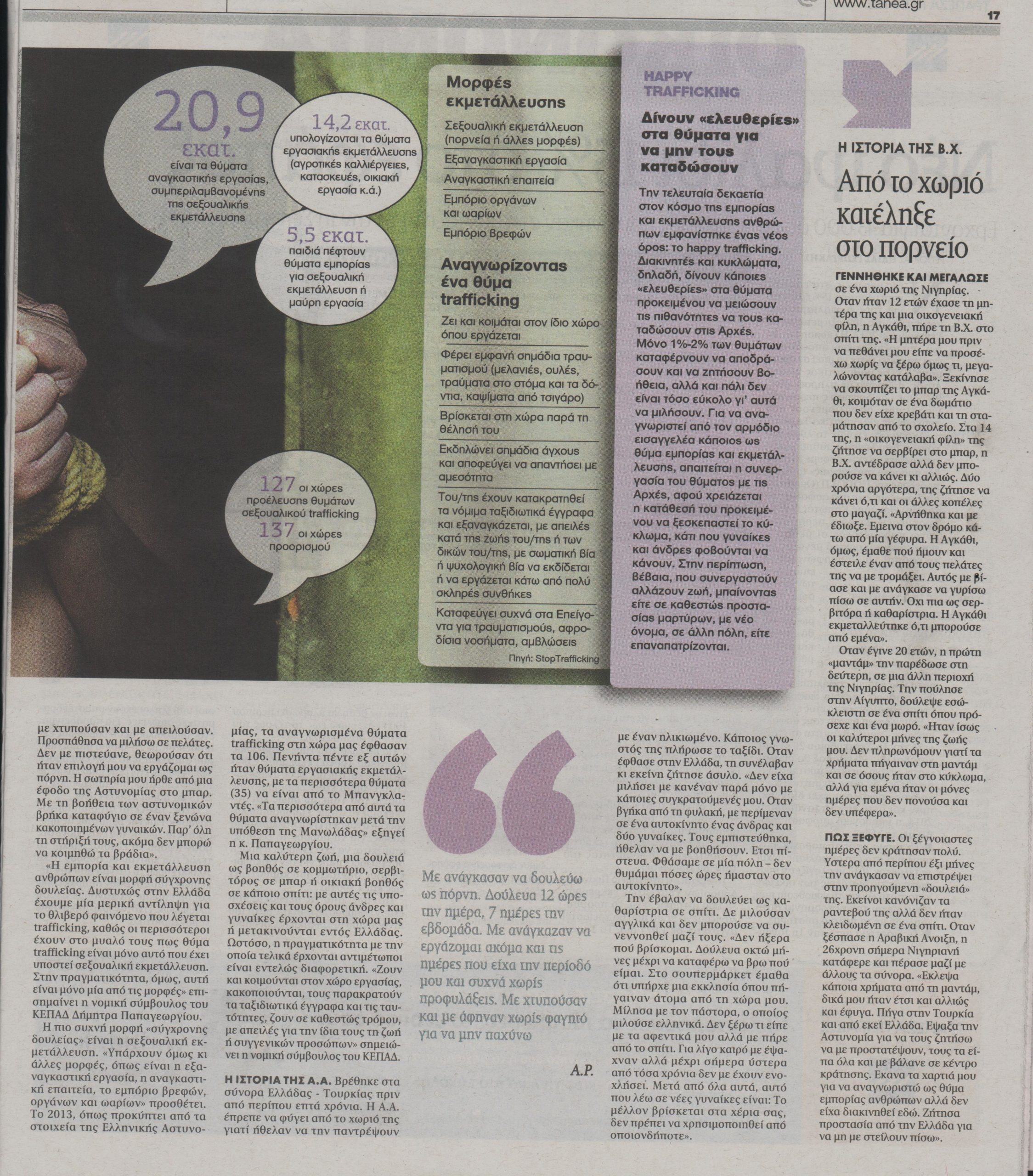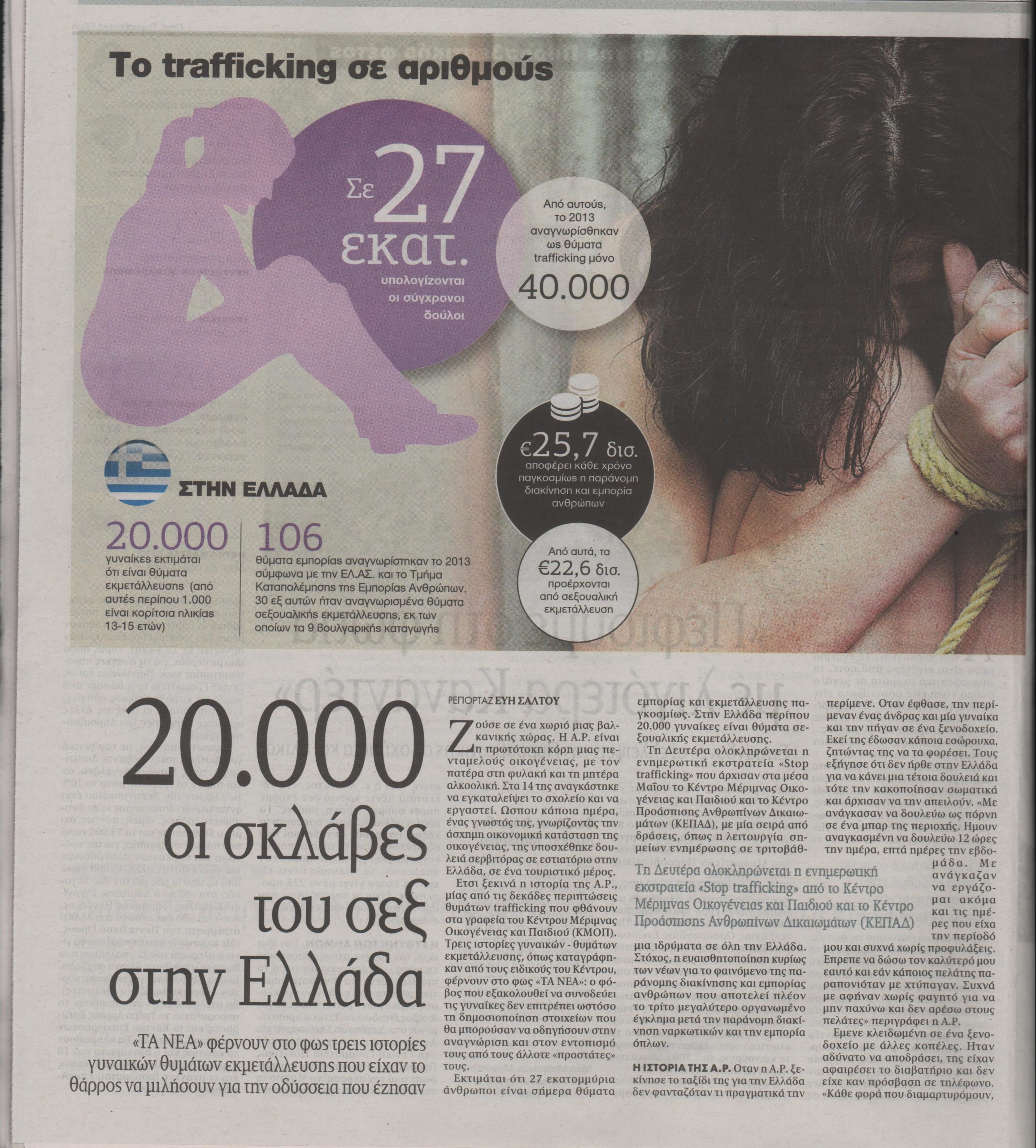 Εκτιμάται ότι 27 εκατομμύρια άνθρωποι είναι σήμερα θύματα εμπορίας και εκμετάλλευσης, παγκοσμίως. Στην Ελλάδα, περίπου 20.000 γυναίκες είναι θύματα σεξουαλικής εκμετάλλευσης.