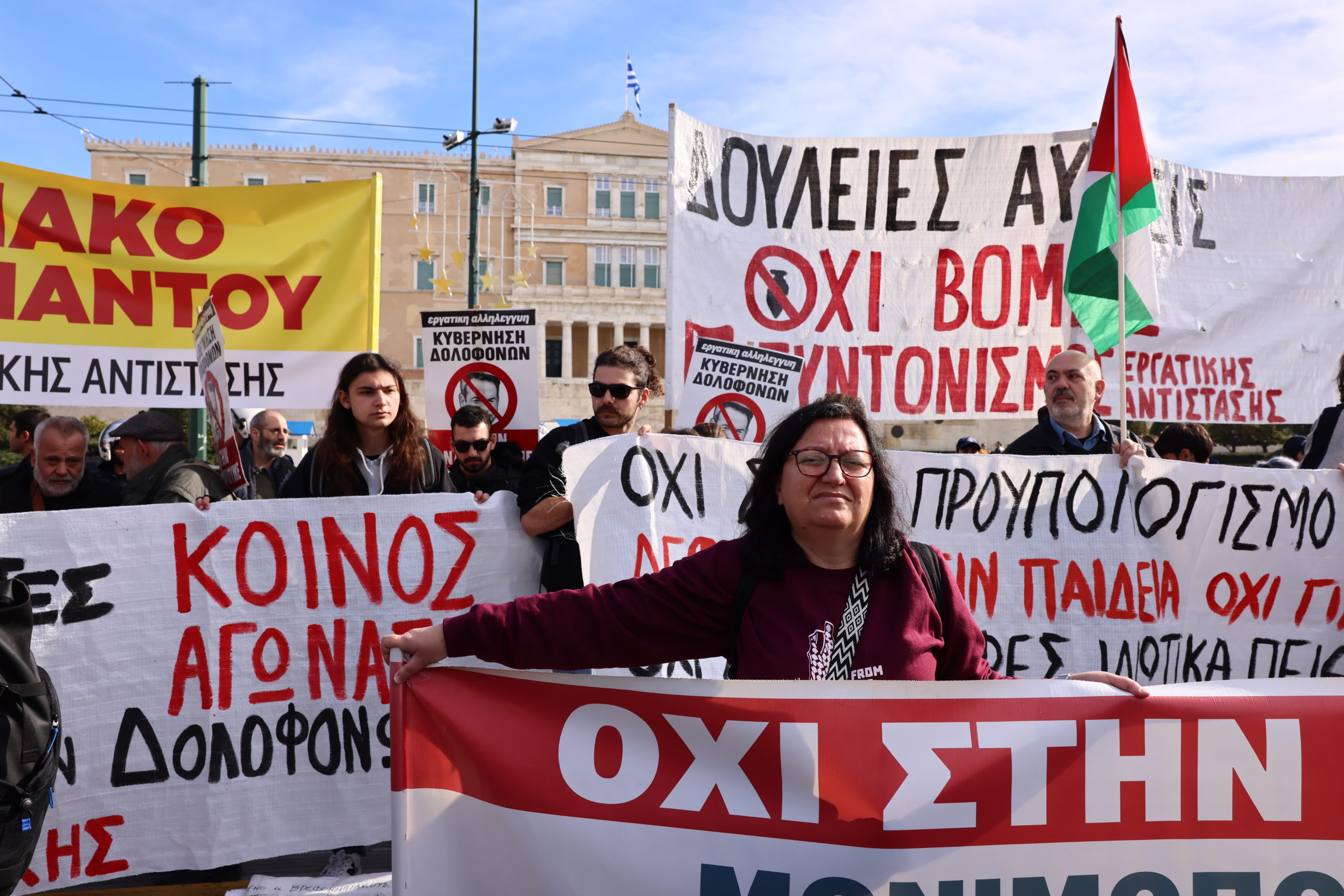 Συνδικάτα και εργαζόμενοι πραγματοποίησαν συγκέντρωση διαμαρτυρίας στο κέντρο της Αθήνας, «ενάντια στον νέο αντιλαϊκό – φορομπηχτικό προϋπολογισμό της κυβέρνησης της ΝΔ που φέρνει νέα καταιγίδα φόρων για τους εργαζόμενους και νέα προνόμια για τους μεγάλους επιχειρηματικούς ομίλους», όπως επισημαίνεται σε ανακοίνωση της ΑΔΕΔΥ.