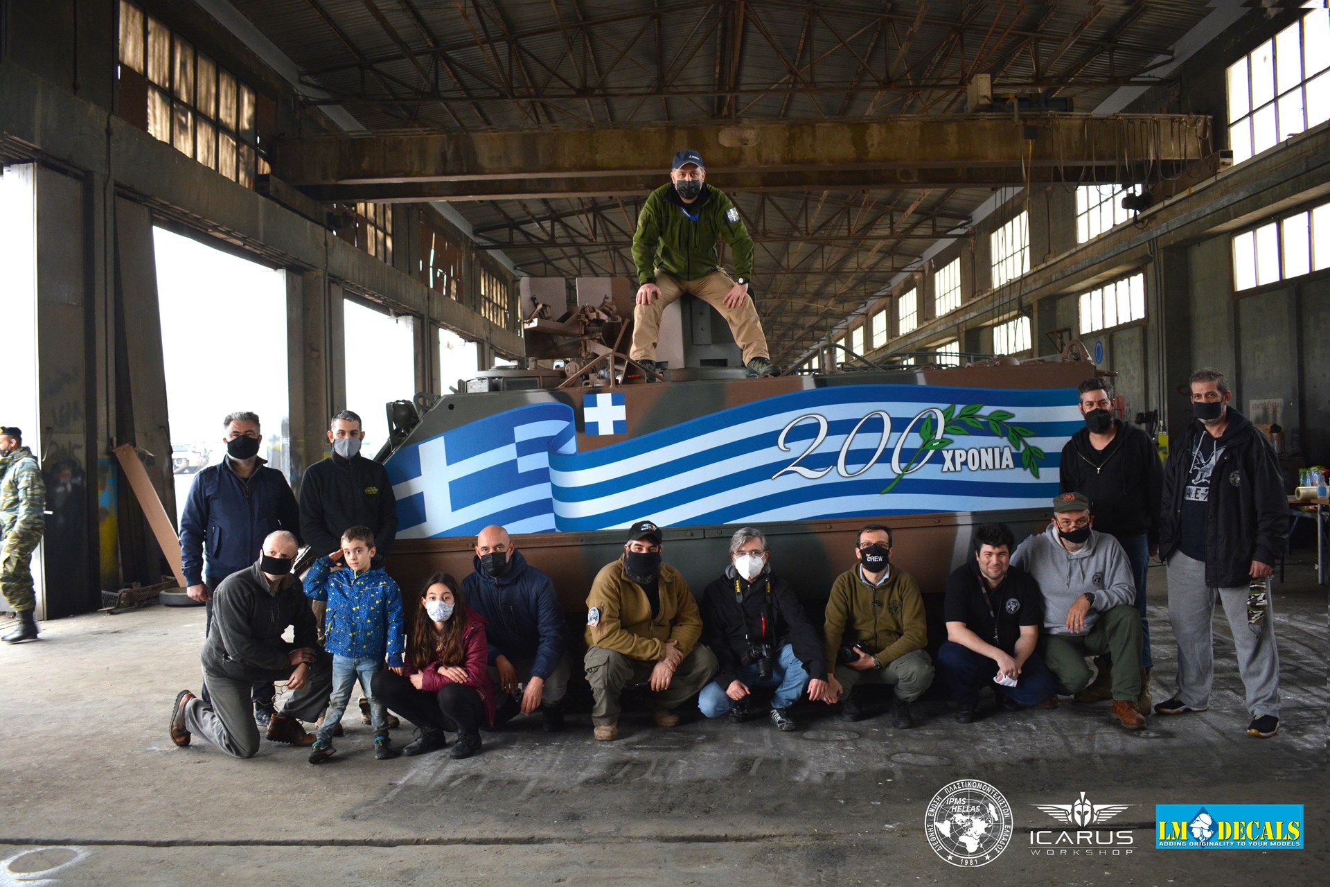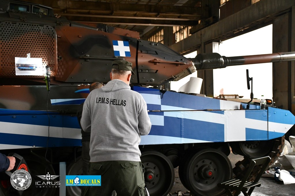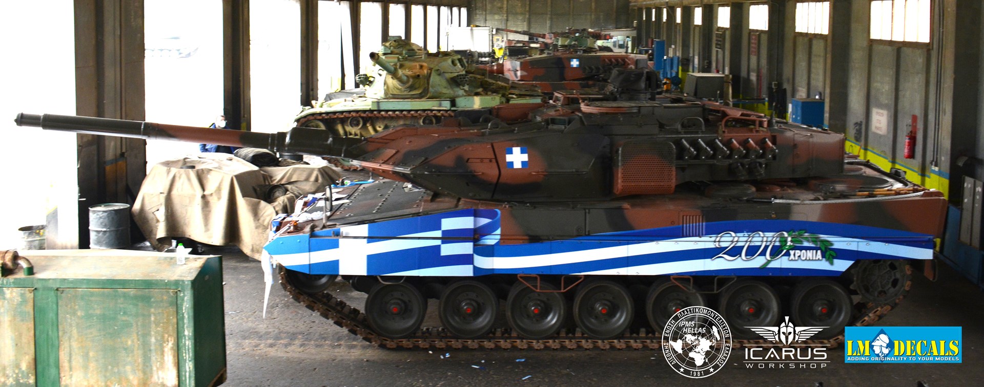Η ετοιμασία των ειδικών εκδόσεων των τεθωρακισμένων οχημάτων για τα 200 χρόνια ξεκίνησε πριν από έναν μήνα από τους χομπίστες της IMPS Ελλάδος, όπως και τους επαγγελματίες των εταιριών Icarus Workshop του Δημήτρη Σταθόπουλου, ο οποίος υλοποίησε σχεδιαστικά το πρότζεκτ, και LM Decals που κατασκεύασαν και τοποθέτησαν τον επετειακό διάκοσμο πάνω στα οχήματα. «Το βασικό σχέδιο προτάθηκε από το ΓΕΣ, εμείς εκτελέσαμε τις τροποποιήσεις, την ειδική προσαρμογή και την τοποθέτηση πάνω στα δύο ερπυστριοφόρα οχήματα. Είναι μια πολύ απαιτητική και ιδιότυπη εργασία να “ τοποθετήσεις” έναν διάκοσμο πάνω σε ένα άρμα δέκα μέτρων και… 70 τόνων!», επισήμανε ο κ. Σούλης.