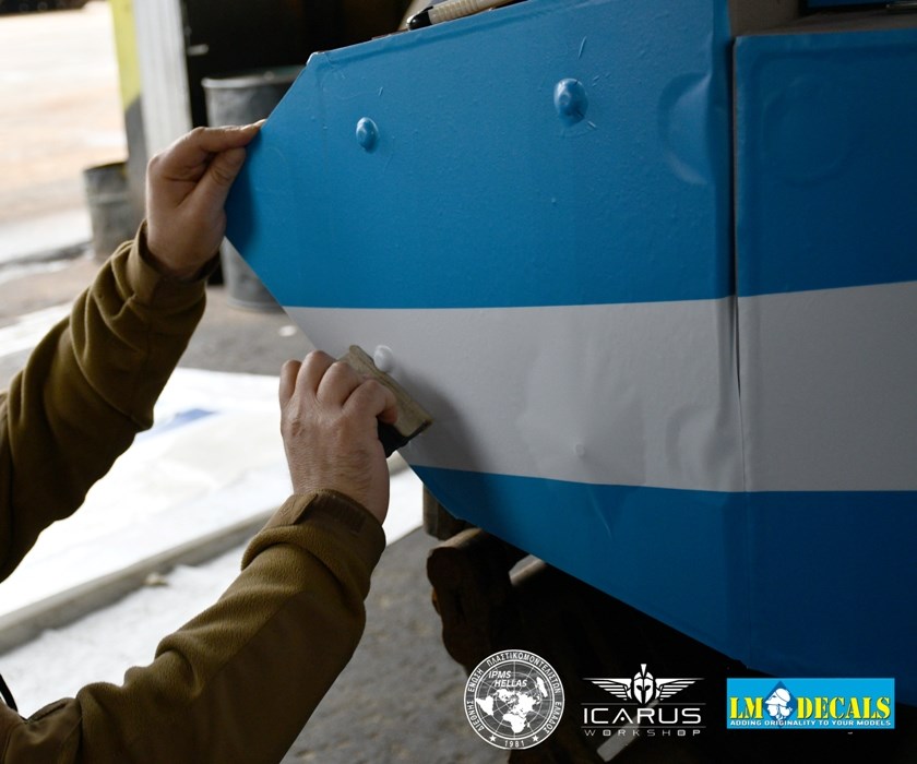 Από την έγκριση μέχρι το τελικό σχέδιο, την εκτύπωση, την προσαρμογή και το τελικό φινίρισμα του διάκοσμου πάνω στα τεθωρακισμένα οχήματα χρειάστηκε εργασία πολλών ημερών, ενώ την τοποθέτηση τελικά «ολοκλήρωσαν περί τα 16 άτομα, ως επί το πλείστον χομπίστες, ενθουσιώδεις μελετητές των ΕΔ και του εξοπλισμού τους», τόνισε ο πρόεδρος της Διεθνούς Ένωσης Πλαστικομοντελιστών Ελλάδος, που προσμένει με ενθουσιασμό την αυριανή ημέρα.