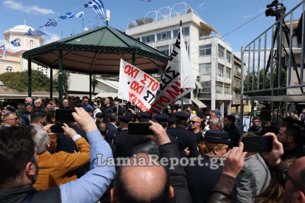 Ένταση σημειώθηκε σήμερα στη Λαμία μετά την παρέλαση στην πλατεία Ελευθερίας για την επέτειο της 25ης Μαρτίου.