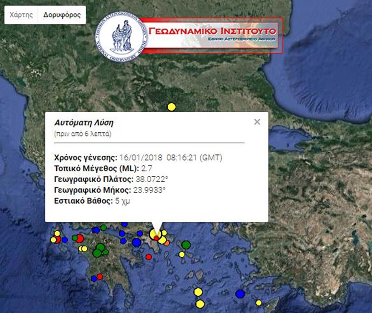 Σύμφωνα με το Γεωδυναμικό Ινστιτούτο του Αστεροσκοπείου Αθηνών, η δόνηση ήταν μεγέθους 2,7 βαθμών της κλίμακας Ρίχτερ σε εστιακό βάθος 5 χιλιομέτρων. Το επίκεντρο του σεισμού, εντοπίζεται στα 26 χιλιόμετρα ανατολικά-βορειοανατολικά της Αθήνας.
