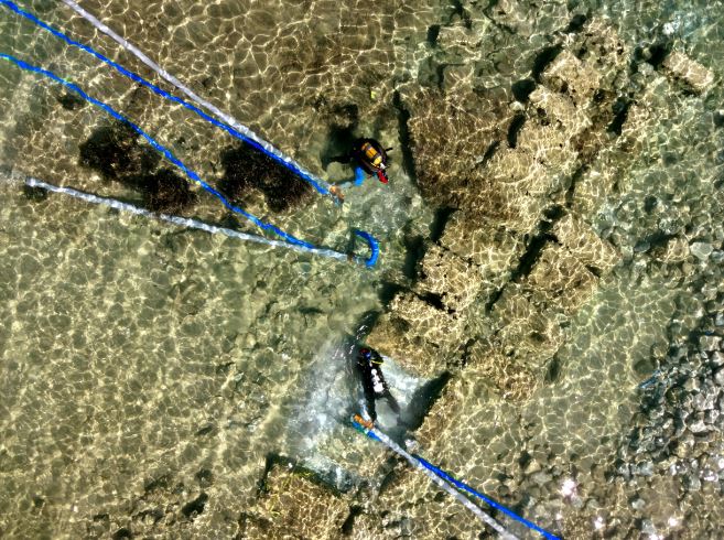 Καταδυόμενος αρχαιολόγος αποτυπώνει το βορειοδυτικό τμήμα του διαύλου.
