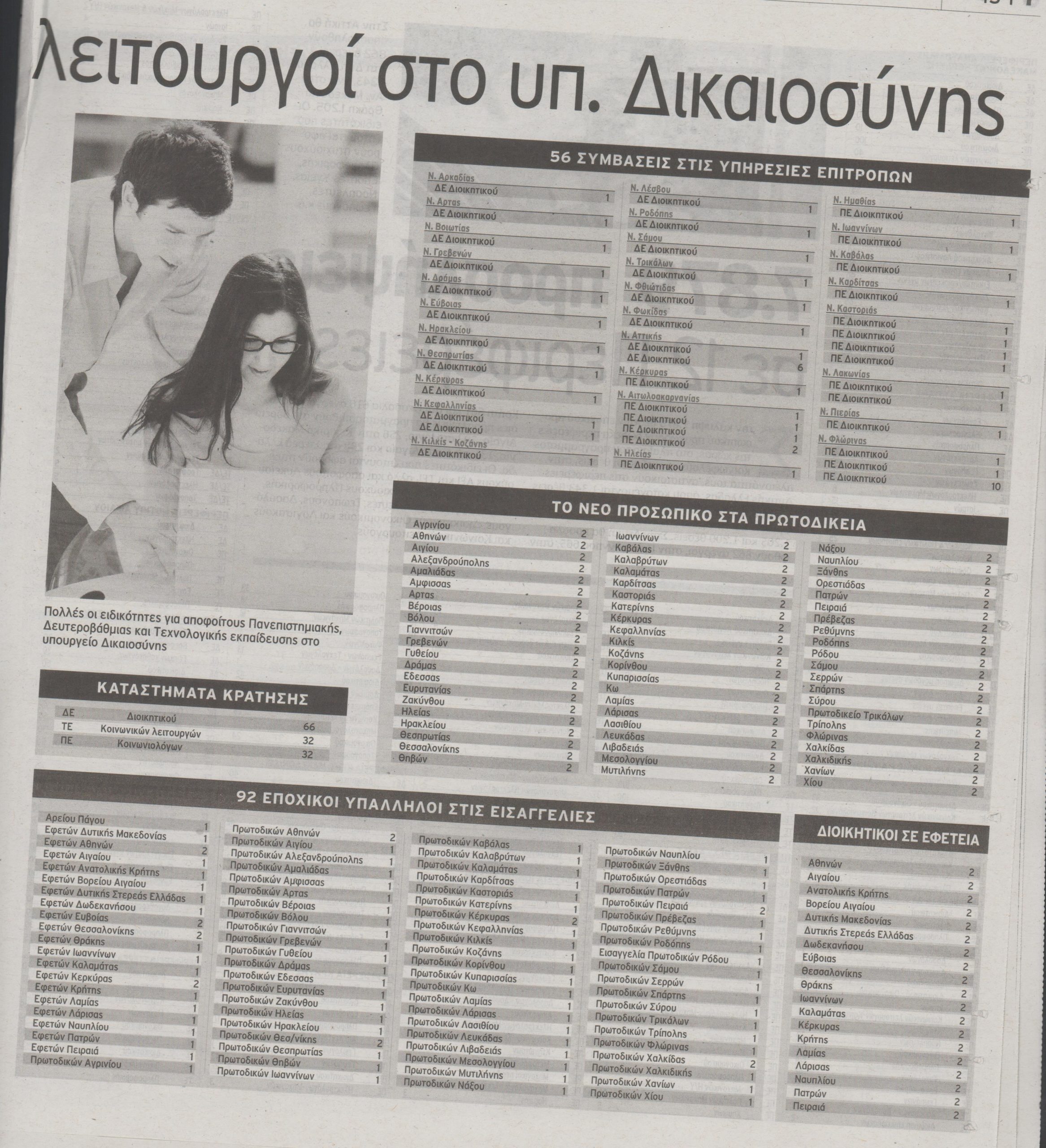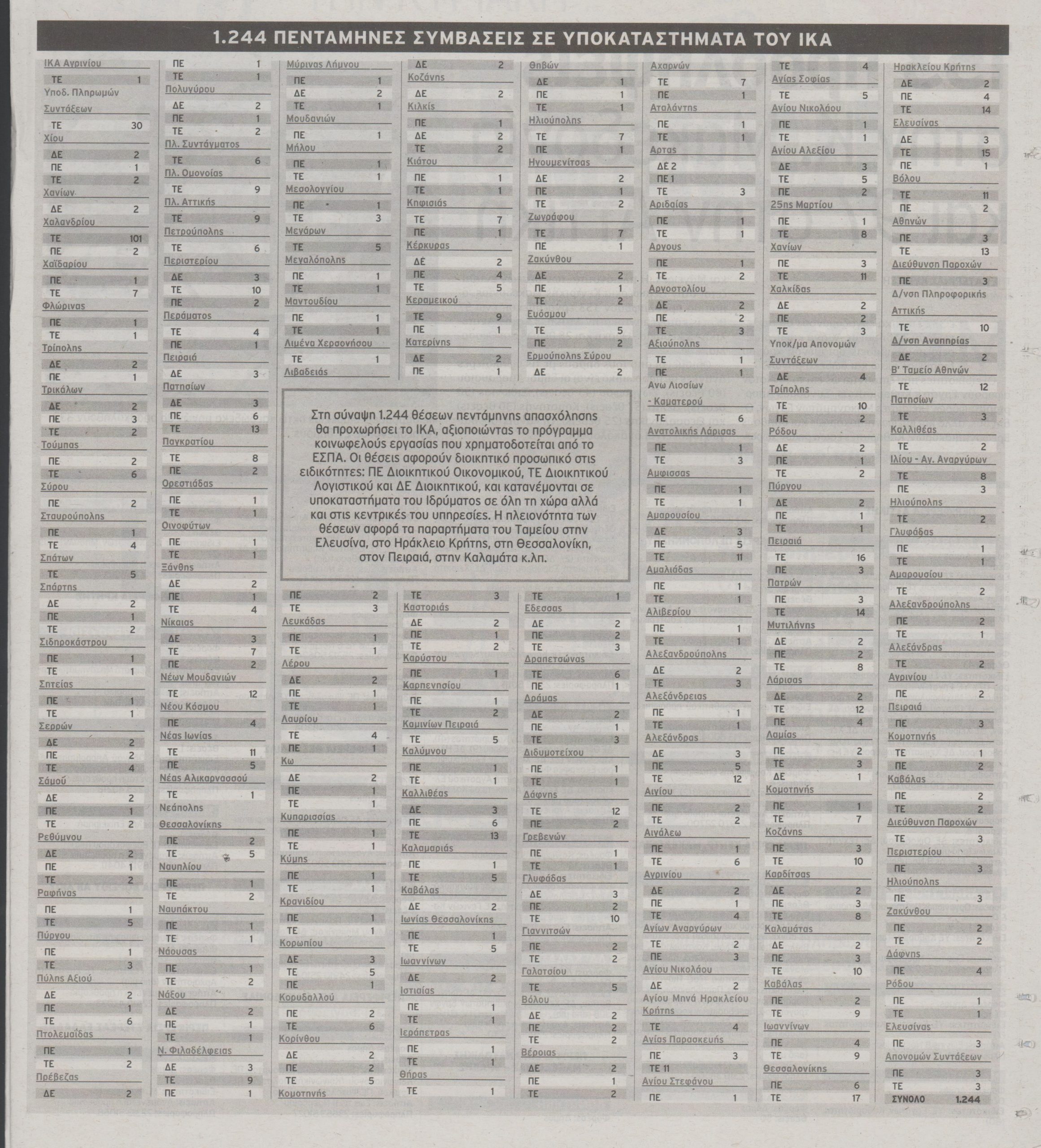 Οι θέσεις κατανέμονται σε δήμους, Περιφέρειες, ιερές μητροπόλεις, δικαστήρια και μεγάλους οργανισμούς του δημοσίου και καλύπτουν υπηρεσίες σε ολόκληρη τη χώρα.