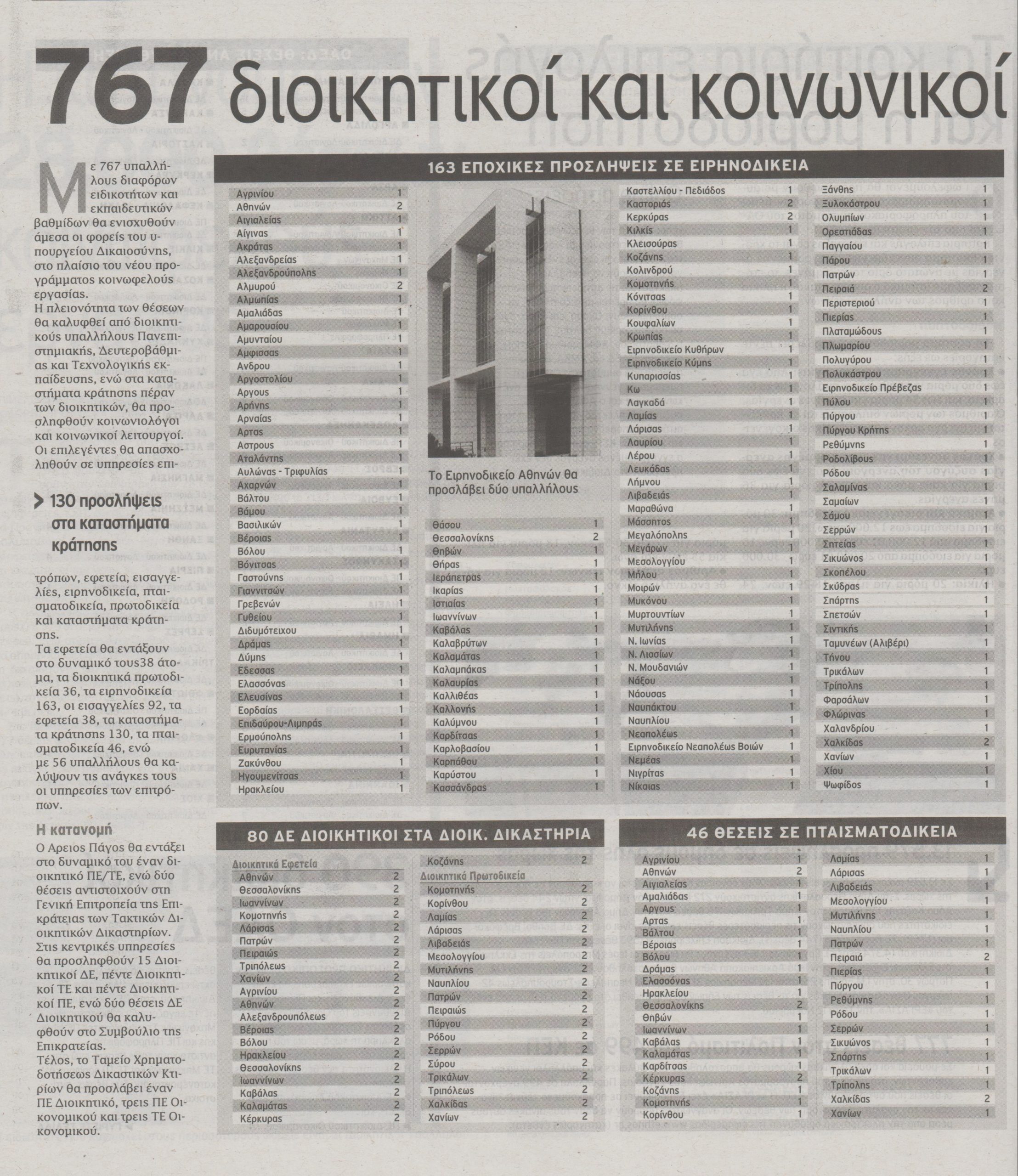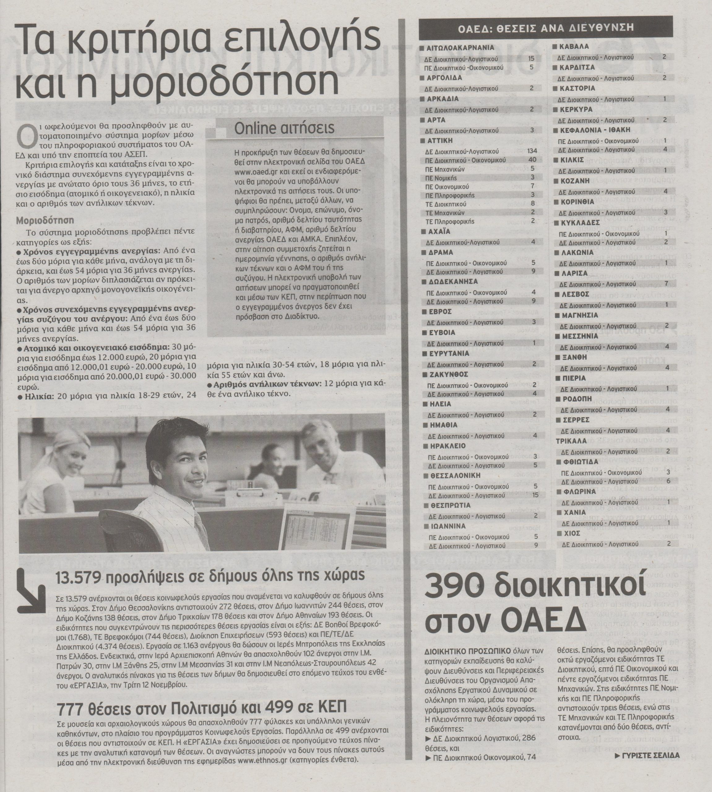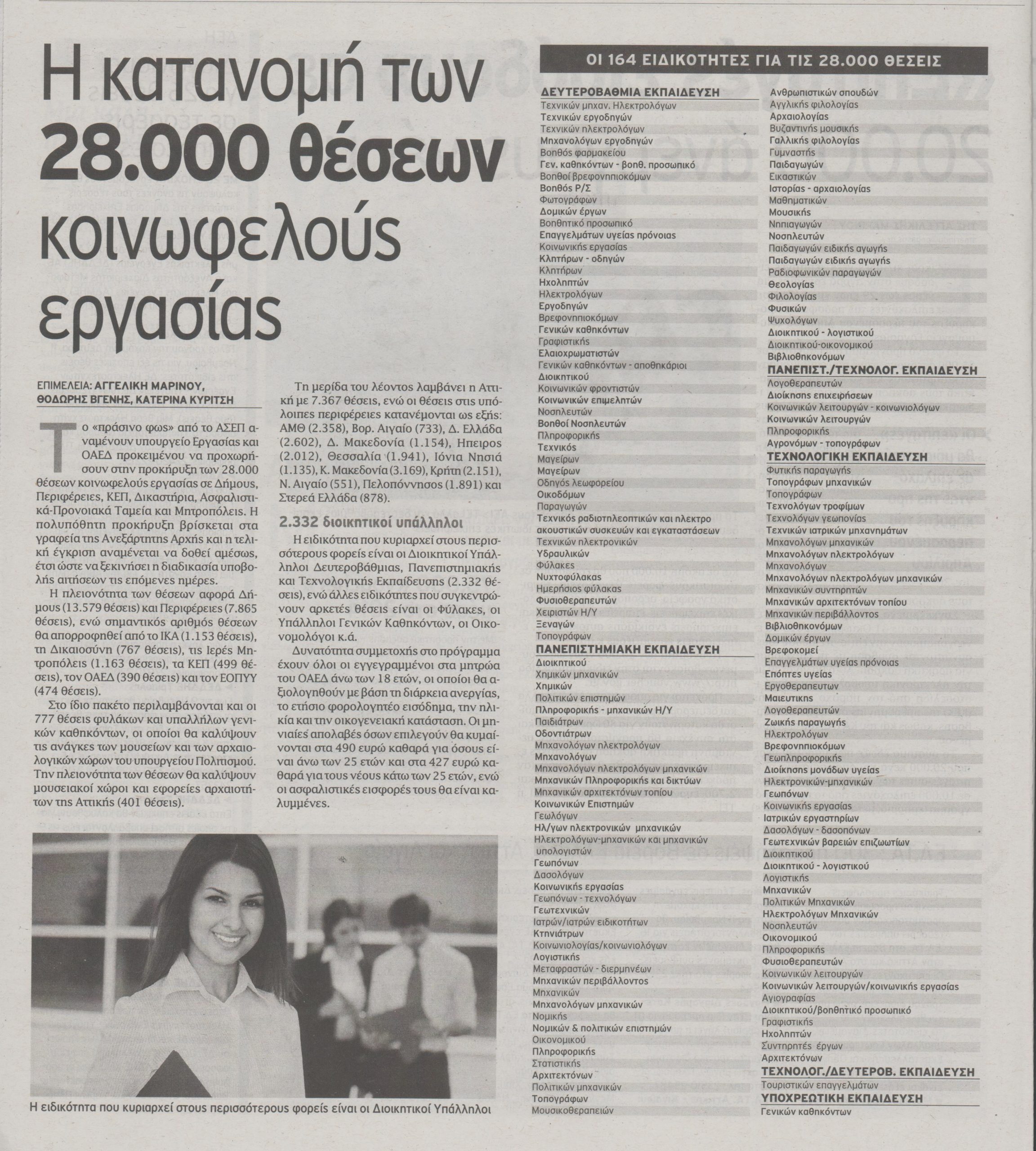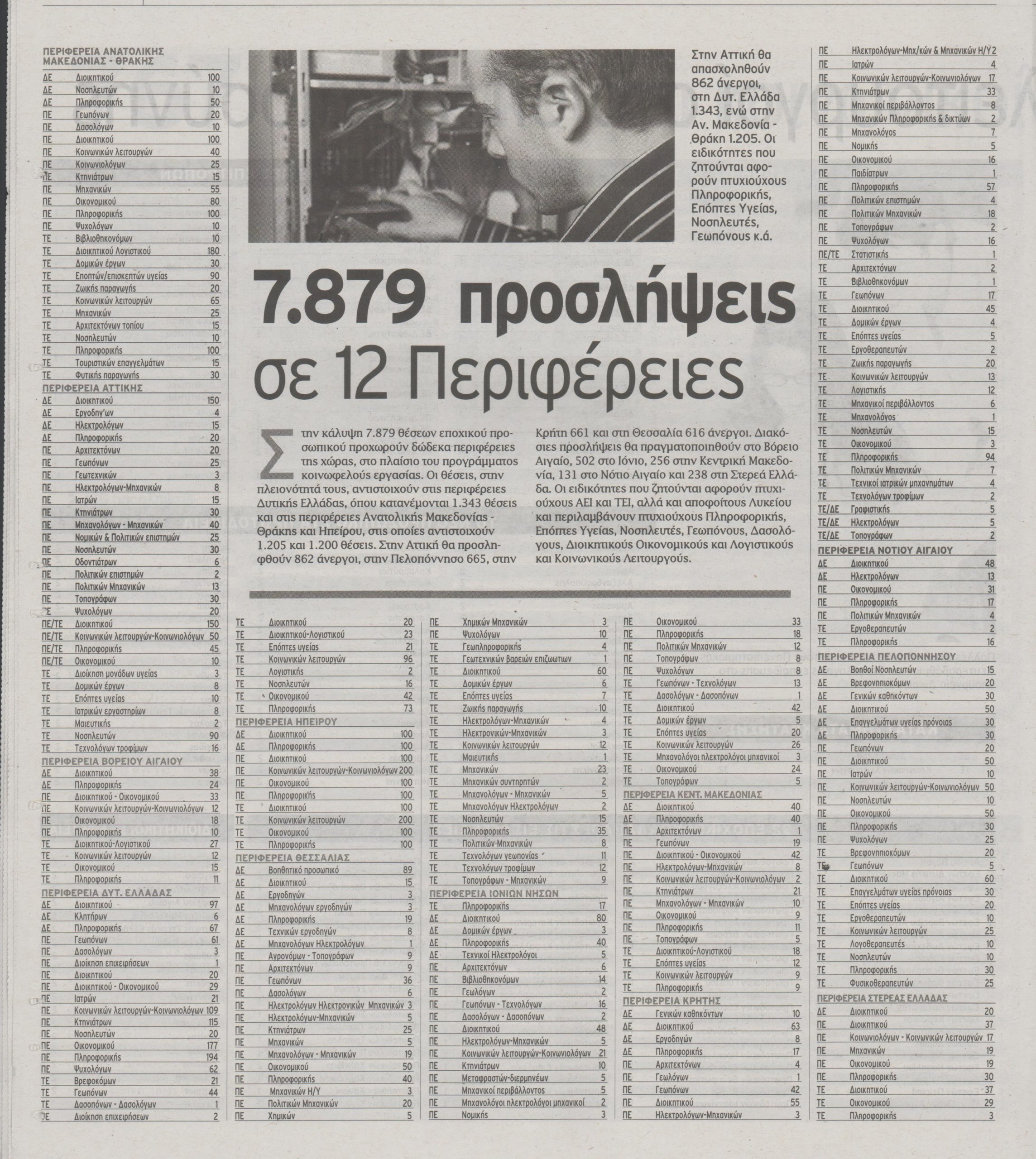 28.000 θέσεις εργασίας – Αναλυτικοί πίνακες