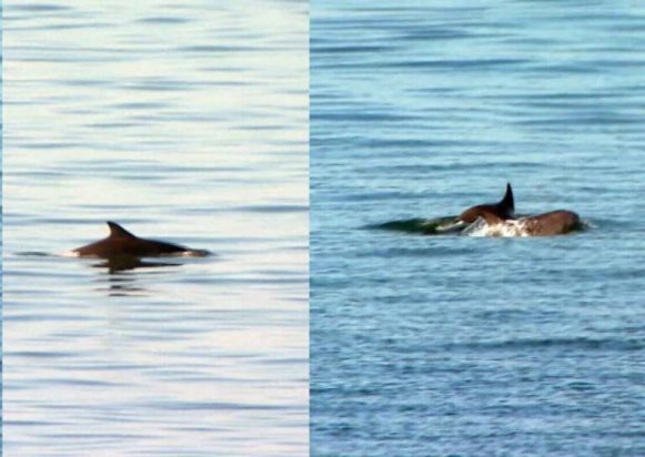 Και τα δελφίνια του Θερμαϊκού «παρελαύνουν» στη Θεσσαλονίκη, λίγο πριν από την έναρξη της μεγάλης στρατιωτικής παρέλασης για την επέτειο της 28ης Οκτωβρίου.