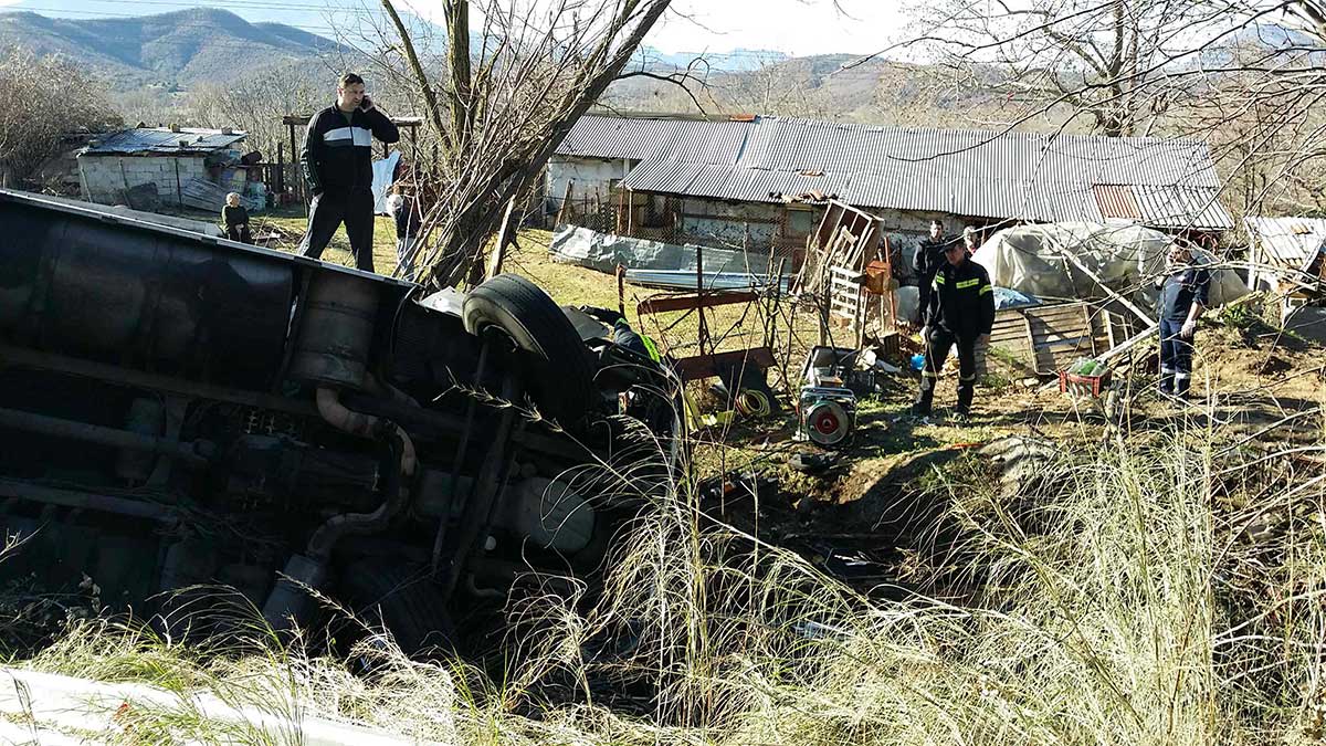 Τροχαίο ατύχημα σημειώθηκε στο 2ο χλμ της Οδού Καλαμπάκας –Μουργκάνι, καθώς νταλίκα που κατευθύνονταν προς τα Ιωάννινα ανατράπηκε σε στροφή.