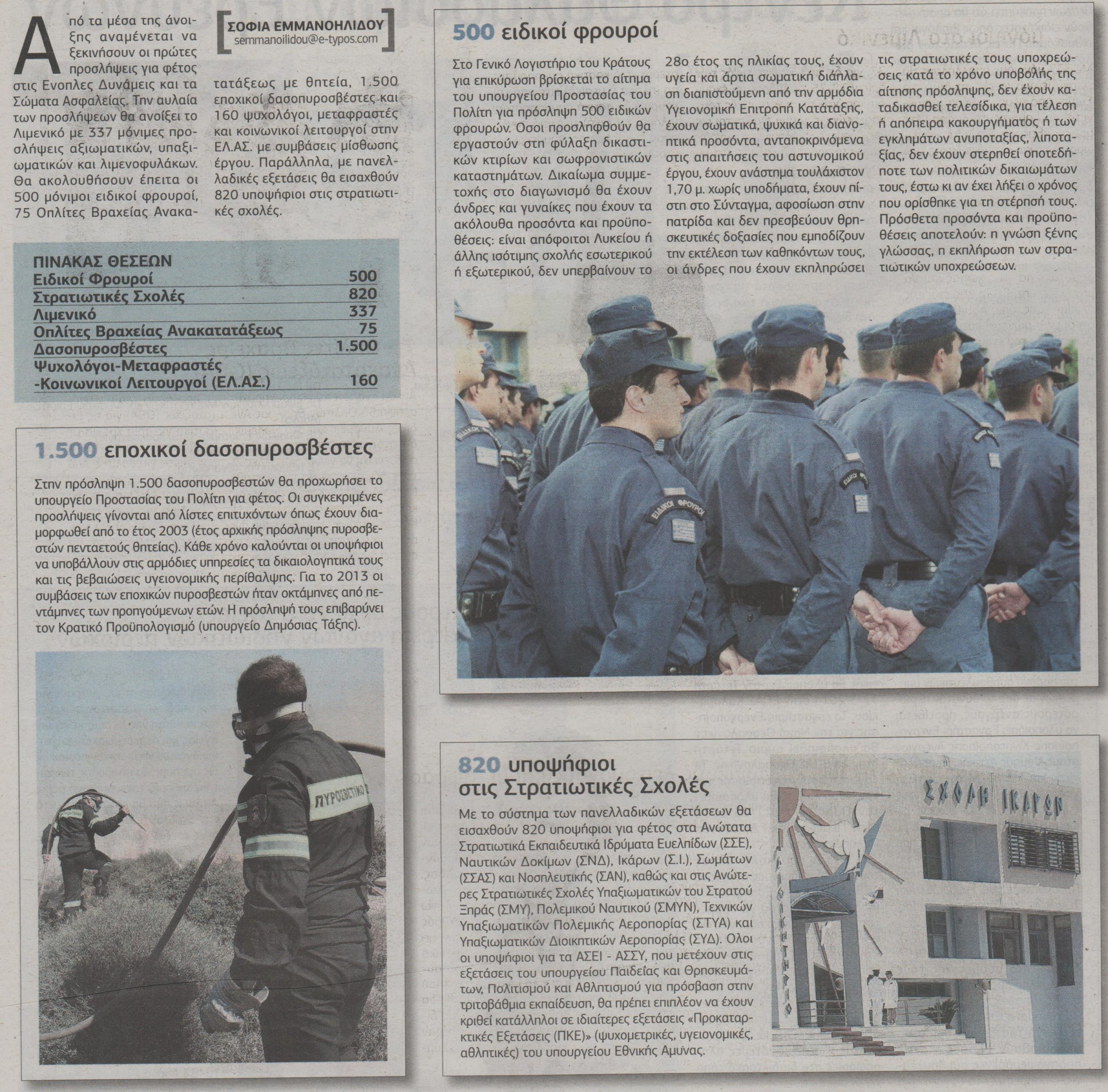 3.392 προσλήψεις σε Ένοπλες Δυνάμεις και Σώματα Ασφαλείας