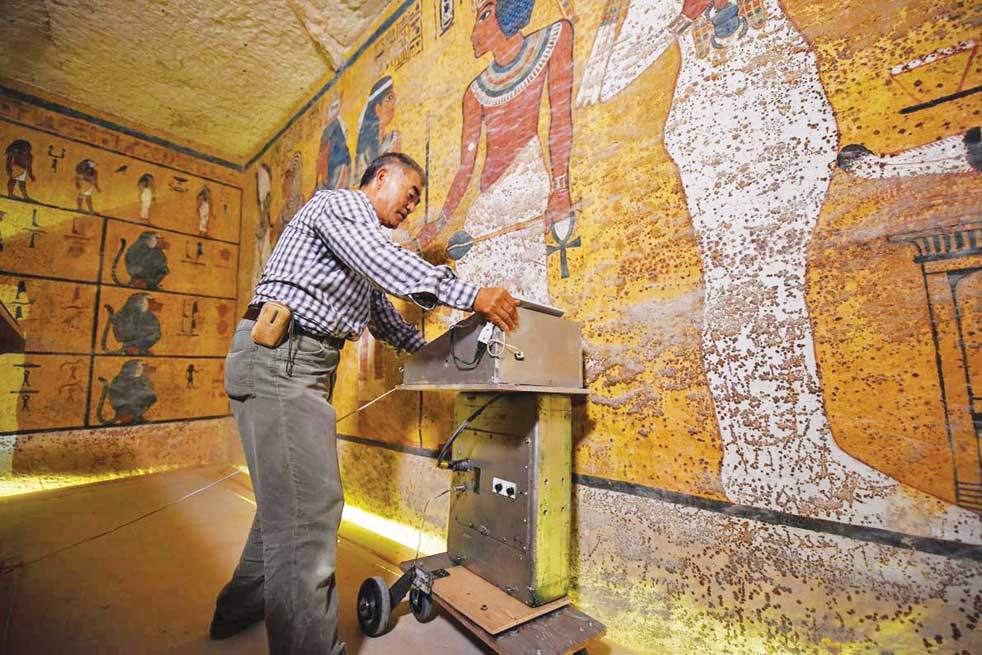 Σε κάποιο σημείο της τοιχογραφίας που καλύπτει εξωτερικά τοίχο του ταφικού μνημείου του Τουταγχαμών, οι ακτίνες διέκριναν άνοιγμα, κάτι που δείχνει πως ο τοίχος είχε κανονική είσοδο που σφραγίστηκε πριν από την τοιχογράφησή του. Εντοπίστηκε επίσης ένας κρυφός διάδρομος.