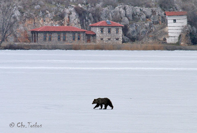 «Βλέπαμε την αρκούδα που είναι μικρής ηλικίας, περίπου 3 χρονών, να παίζει με τα πουλιά και να κατευθύνεται προς την πόλη. Προσπαθήσαμε τότε να την τρομάξουμε με κροτίδες και κόρνες, φοβούμενοι πάντα μην σπάσει ο πάγος και εγκλωβιστεί στα παγωμένα νερά» περιγράφει στο ΑΠΕ-ΜΠΕ ο Νίκος Παναγιωτόπουλος, μέλος του «Αρκτούρου» και της ΕΠΠΚ.