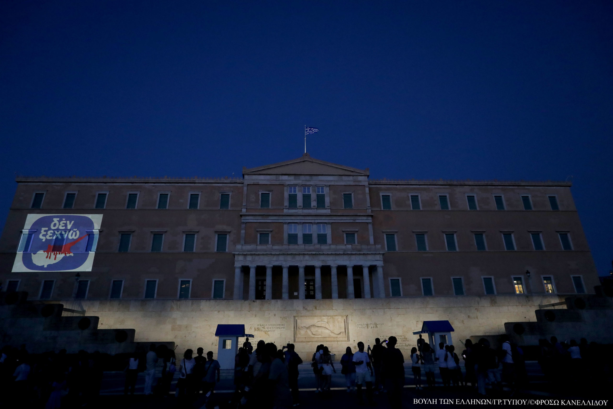 Με το εμβληματικό σήμα «Δεν ξεχνώ» για την εισβολή του «Αττίλα» στην Κύπρο, το 1974, φωταγωγήθηκε η Βουλή των Ελλήνων, καθώς φέτος συμπληρώνονται 50 χρόνια από την παράνομη τουρκική στρατιωτική εισβολή στη Μεγαλόνησο.