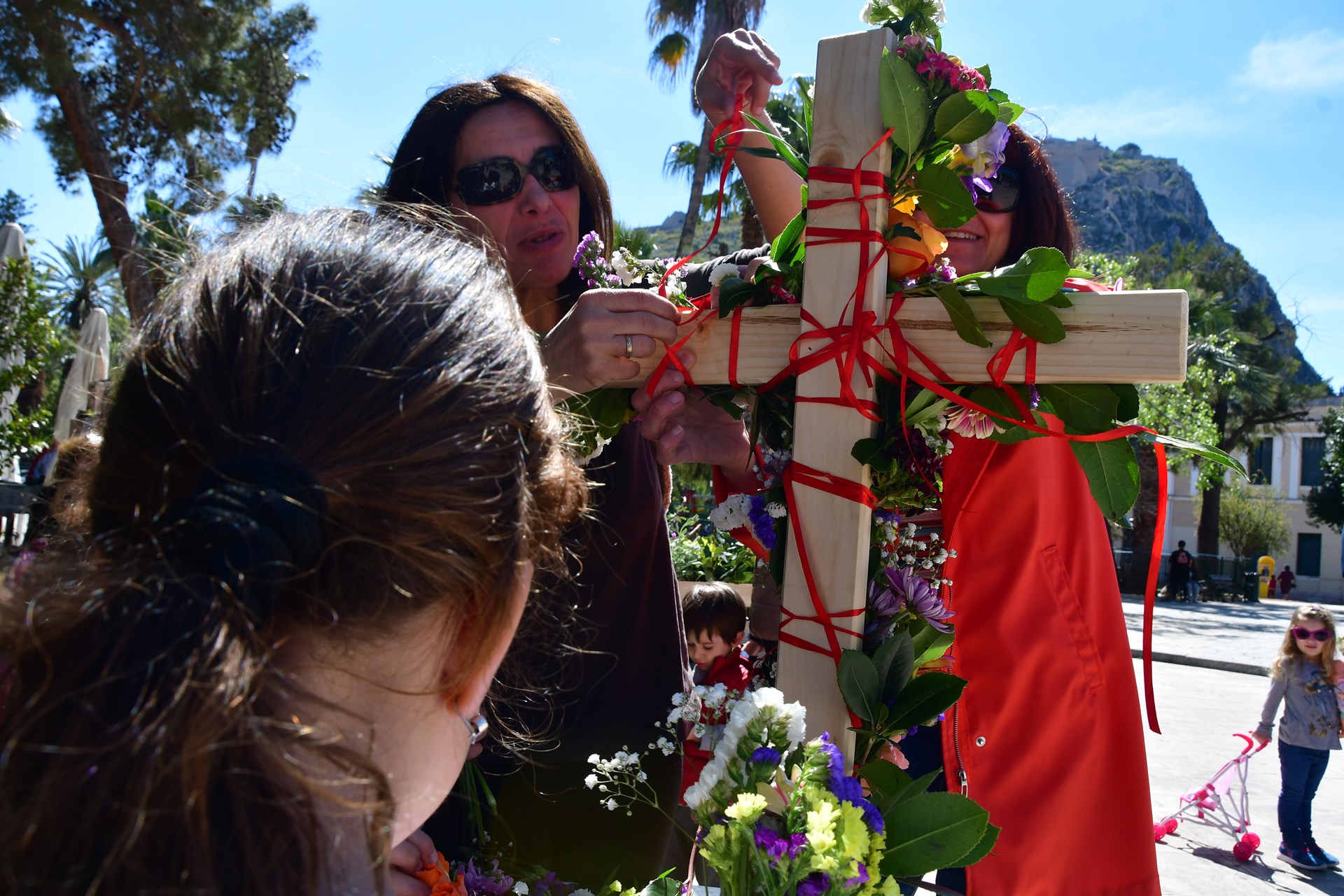 Τα παιδιά των σχολείων της πόλης του Ναυπλίου στόλισαν με λουλούδια τον Λάζαρο και είπαν τα κάλαντα σήμερα στα σοκάκια της παλιάς πόλης.Στην πλατεία Καποδίστρια παιδιά κατασκεύασαν στεφάνια με λουλούδια.Τι γιορτάζουμε το Σάββατο του Λαζάρου;Λάζαρος, ο επονομαζόμενος Δίκαιος και Τετραήμερος, ήταν αδελφός της Μάρθας και της Μαρίας (η γυναίκα που άλειψε με μύρο τα πόδια του Ιησού λίγες ημέρες πριν από τη σταύρωση και στη συνέχεια τα σπόγγισε με τα μαλλιά της), με τις οποίες ζούσε στη Βηθανία, κοντά στα Ιεροσόλυμα. Στο σπίτι τους είχε φιλοξενηθεί επανειλημμένα ο Χριστός, όταν περνούσε από την περιοχή, με κατεύθυνση προς την Ιερουσαλήμ.Κατά την Καινή Διαθήκη (Ιωάννου ια’ 1-44), μια μέρα ο Λάζαρος αρρώστησε βαριά και πέθανε. Οι αδελφές του ειδοποίησαν τον Ιησού ότι ο φίλος του ασθενεί βαρέως, αλλά εκείνος καθυστέρησε να έλθει. Στους μαθητές του είπε ότι ο φίλος του κοιμήθηκε και ότι θα μεταβεί στη Βηθανία για να τον ξυπνήσει. Όταν έφθασε στη Βηθανία με τους μαθητές του, η Μαρία του παραπονέθηκε ότι αν ερχόταν εγκαίρως δεν θα πέθαινε ο αδελφός της. Τότε, ο Ιησούς δάκρυσε και με φωνή μεγάλη προ του τάφου εκραύγασε: «Λάζαρε δεύρο έξω!» και ανάστησε τον Λάζαρο τέσσερις ημέρες μετά τον θάνατό του, προκαλώντας τον θαυμασμό των παρισταμένων και το θανάσιμο μίσος των εχθρών του Φαρισαίων (Ιωάννου ια’ 45-57).Σύμφωνα με την παράδοση, ο Λάζαρος ήταν τότε 30 χρονών και έζησε άλλα 30 χρόνια. Έγινε επίσκοπος Κιτίου στην Κύπρο και πέθανε σε ηλικία 60 ετών. Τον Οκτώβριο του 890 ο βυζαντινός αυτοκράτορας Λέων ΣΤ’ ο Σοφός βρήκε στην Κύπρο το λείψανο του Λαζάρου και το μετέφερε στην Κωνσταντινούπολη. Το τοποθέτησε σε αργυρή θήκη στον ομώνυμο ναό που κτίσθηκε στη βασιλεύουσα. Η ανακομιδή των λειψάνων του εορτάζεται στις 17 Οκτωβρίου. Ο τάφος του Λαζάρου έχει υποδειχθεί μέσα σε βράχο (διαστάσεων 3×3μ.) στο Όρος των Ελαιών στην Ιερουσαλήμ.Το Σάββατο του Λαζάρου σε πολλά μέρη της Ελλάδας οι νοικοκυρές ζυμώνουν ειδικά ψωμάκια, στα οποία δίνουν το σχήμα ανθρώπου και μάλιστα σαβανωμένου, όπως παριστάνεται ο Λάζαρος στη βυζαντινή εικονογραφία. Τα ψωμάκια αυτά λέγονται λαζάροι, λαζαρούδια, λαζαράκια, λαζόνια, λαζαρέλια κ.ά.