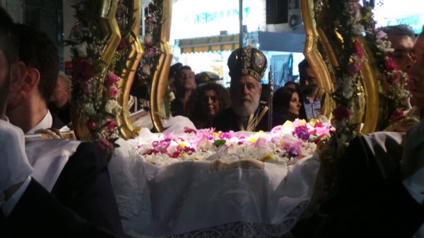 Νωρίτερα, είχε πραγματοποιηθεί η περιφορά του Επιταφίου του Ιερού Καθολικού Ναού της Ευαγγελιστρίας, την οποία συνόδευε η μικτή χορωδία της ενορίας και πλήθος πιστών.