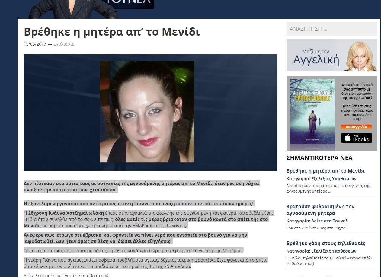 Η εξαντλημένη γυναίκα που αντίκρισαν, ήταν η Γιάννα που αναζητούσαν παντού επί είκοσι ημέρες!