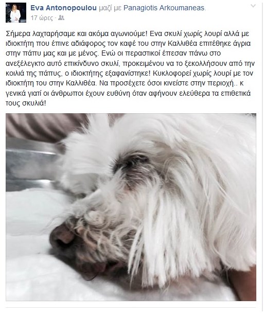Η δημοσιογράφος, με μία ανάρτηση στον προσωπικό της λογαριασμό στο facebook, μίλησε για ένα άσχημο περιστατικό που συνέβη στον αγαπημένο τετράποδο φίλο της.