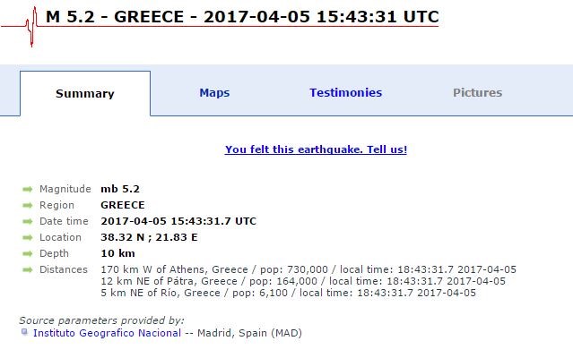 5,2 Ρίχτερ δίνει τον σεισμό στην Πάτρα το Ευρωμεσογειακό – ΤΩΡΑ Στεφανία Κασίμη 18:54, Τετάρτη 05 Απριλίου 2017 κοινωνία 5,2 Ρίχτερ δίνει τον σεισμό στην Πάτρα το Ευρωμεσογειακό Σεισμολογικό Κέντρο. Σύμφωνα με την μέτρηση, το επίκεντρο του σεισμού είναι 12 χλμ βορειοανατολικά της Πάτρας και το εστιακό βάθος του σεισμού είναι 10 χλμ. ΠΑΤΡΑ ΣΕΙΣΜΟΣ Μοιράσου το: σχολίασε κι εσύ (0 σχόλια) Ακολουθήστε το enikos.gr στο Google News και μάθετε πρώτοι όλες τις ειδήσεις Δείτε όλες τις τελευταίες ειδήσεις από την Ελλάδα και τον Κόσμο στο enikos.gr Ειδήσεις Ροή Ειδήσεων 1 ώρα πριν Πώς δρούσε το κύκλωμα που διακινούσε ναρκωτικά σε σχολεία – Υπέβαλαν σε βασανιστήρια όσους δεν τηρούσαν τους «κανόνες πειθαρχίας» 2 ώρες πριν Αγρότες: Γιορτές στα μπλόκα με ανοιχτά διόδια – Δικογραφία στα Ιωάννινα για το σήκωμα των μπαρών 5 ώρες πριν Αρχεία Έπσταϊν: Οι συγκλονιστικές φωτογραφίες – Ο Μάικλ Τζάκσον, ο Μικ Τζάγκερ και ο Κέβιν Σπέισι ανάμεσα στους διάσημους που απεικονίζονται 24 λεπτά πριν NBC: Ο Νετανιάχου σχεδιάζει να ενημερώσει τον Τραμπ για πιθανά νέα πλήγματα εναντίον του Ιράν 34 λεπτά πριν Αττική: Εξαρθρώθηκε εγκληματική οργάνωση που έκλεβε οχήματα, τα παραποιούσε και τα μεταπωλούσε σε πολίτες – Πώς δρούσε το κύκλωμα 2 ώρες πριν Η τύχη χαμογελά σε 3 ζώδια έως τις 28 Δεκεμβρίου – «Προσέξτε τις επιλογές σας και η επιμονή σας θα ανταμειφθεί» 6 ώρες πριν Διαιτολόγος αποκαλύπτει 9 πρωινές συνήθειες που «λιώνουν» το κοιλιακό λίπος – «Υποστηρίζουν την υγιεινή απώλεια βάρους» 3 ώρες πριν Μία ανεκμετάλλευτη πηγή θα μπορούσε να προσφέρει ανεξάντλητη ενέργεια – Οι επιστήμονες ίσως γνωρίζουν πώς να την ξεκλειδώσουν 9 ώρες πριν Enerwave: Το νέο «ρεύμα» στη λιανική ενέργειας που αλλάζει την εμπειρία του καταναλωτή 5 λεπτά πριν Νιούκαστλ – Τσέλσι 2-2: Αλύγιστοι οι Λονδρέζοι 16 λεπτά πριν Μικαέλα Μπέντχαους: Ο πρώτος άνθρωπος σε αναπηρικό αμαξίδιο που ταξίδεψε στο διάστημα – ΒΙΝΤΕΟ 24 λεπτά πριν NBC: Ο Νετανιάχου σχεδιάζει να ενημερώσει τον Τραμπ για πιθανά νέα πλήγματα εναντίον του Ιράν 34 λεπτά πριν Αττική: Εξαρθρώθηκε εγκληματική οργάνωση που έκλεβε οχήματα, τα παραποιούσε και τα μεταπωλούσε σε πολίτες – Πώς δρούσε το κύκλωμα 42 λεπτά πριν Κωνσταντίνος Αργυρός: «Δεν θέλω να ασχοληθώ με την πολιτική σε αυτή τη φάση – Μου έχουν γίνει προτάσεις» ENIKOS NETWORK Γιατί πρέπει να ζητάμε χάρες; Ποιο είναι το φαινόμενο Ben Franklin που κάνει τους άλλους να μας συμπαθούν Η αποχή από την αναπαραγωγή παρατείνει τη ζωή στα ζώα, σύμφωνα με μελέτη – Τι ισχύει για τους ανθρώπους; Στα ύψη ο χρυσός – Νέο ρεκόρ στην τιμή της λίρας, πόσο πωλείται Τέλη κυκλοφορίας 2026: Προσοχή στην προθεσμία εξόφλησής τους – Πώς διαμορφώνονται τα πρόστιμα σε περίπτωση καθυστέρησης Χαρτογραφώντας το «σημείο χωρίς επιστροφή»: Για πρώτη φορά αποκαλύπτεται με λεπτομέρεια το ακανθώδες όριο της ατμόσφαιρας τ... Η Google καταργεί τη λειτουργία «dark web report» – Πώς θα μπορούν οι χρήστες να διαγράφουν τα δεδομένα τους περισσότερα 16:45 , Σάββατο 20 Δεκεμβρίου 2025 Πώς δρούσε το κύκλωμα που διακινούσε ναρκωτικά σε σχολεία – Υπέβαλαν σε βασανιστήρια όσους δεν τηρούσαν τους «κανόνες πειθαρχίας» Σοκ προκαλούν οι νέες πληροφορίες που έρχονται στο φως της δημοσιότητας για το κύκλωμα διακίνη... 16:22 , Σάββατο 20 Δεκεμβρίου 2025 Αγρότες: Γιορτές στα μπλόκα με ανοιχτά διόδια – Δικογραφία στα Ιωάννινα για το σήκωμα των μπαρών Αποφασισμένοι να συνεχίσουν τις κινητοποιήσεις το