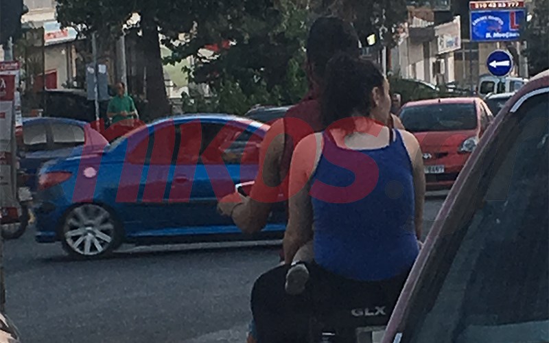Οι συγκεκριμένες φωτογραφίες αποτελούν παράδειγμα ανομίας και έκθεσης σε πολλούς κινδύνους για τη σωματική ακεραιότητα, καθώς κανένας δεν φορά κράνος, ενώ ο οδηγός οδηγεί με σαγιονάρες.