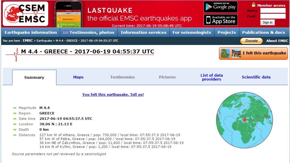 Στα 4,4 Ρίχτερ υπολόγισε τον σεισμό που έγινε στις 7:55 στην Κυλλήνη το Ευρωμεσογειακό Σεισμολογικό Κέντρο.