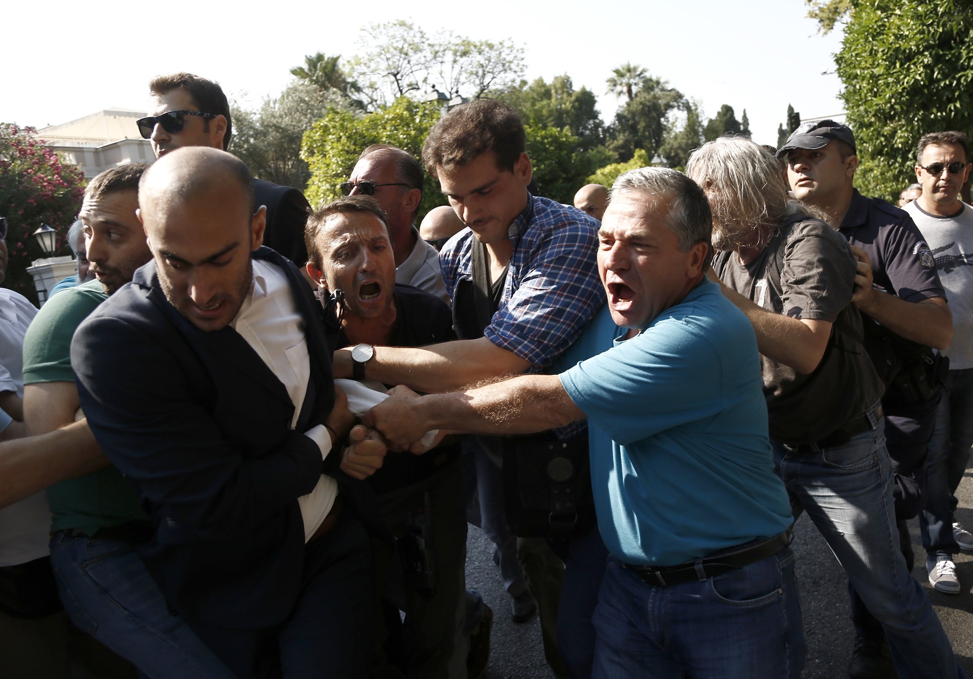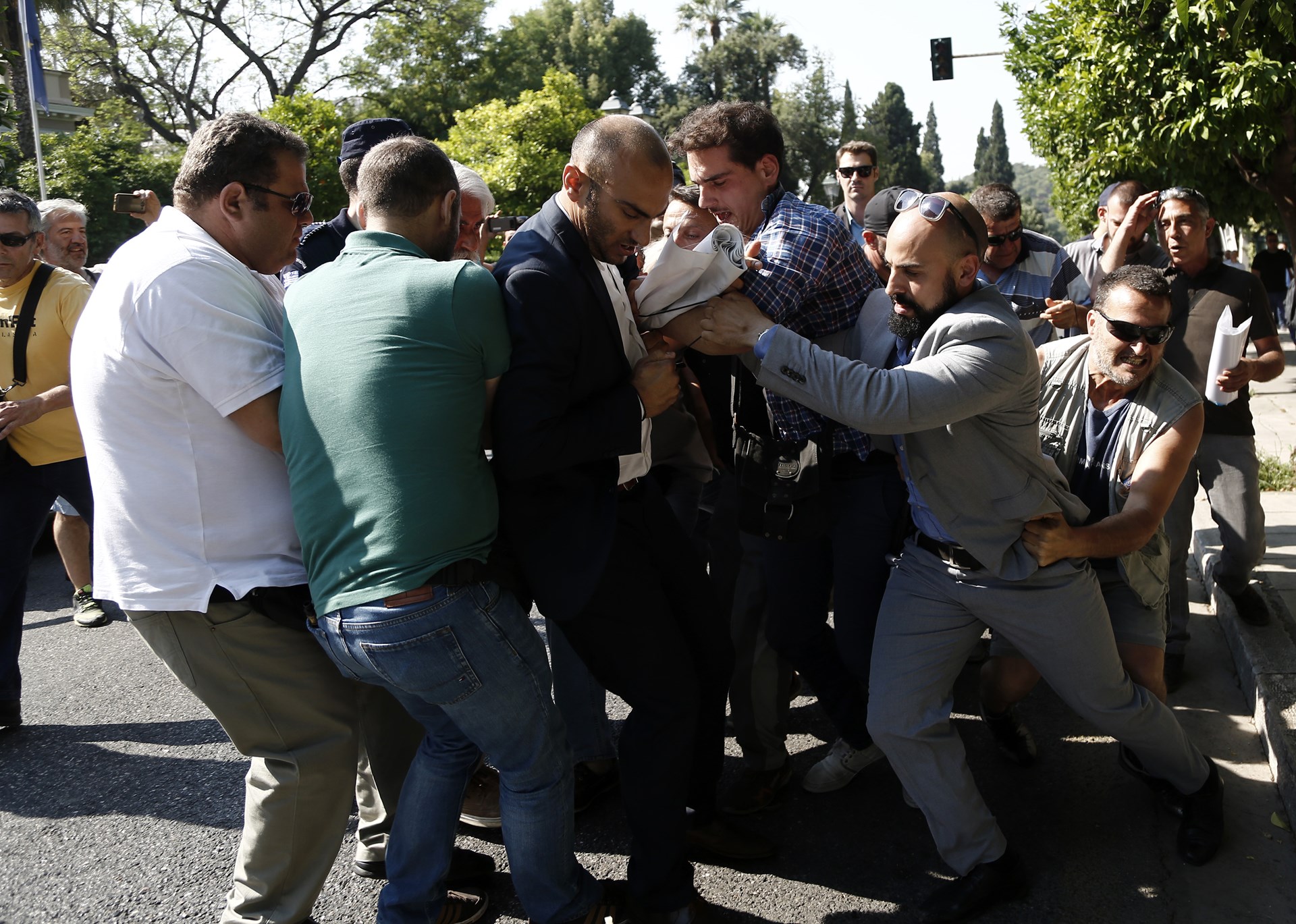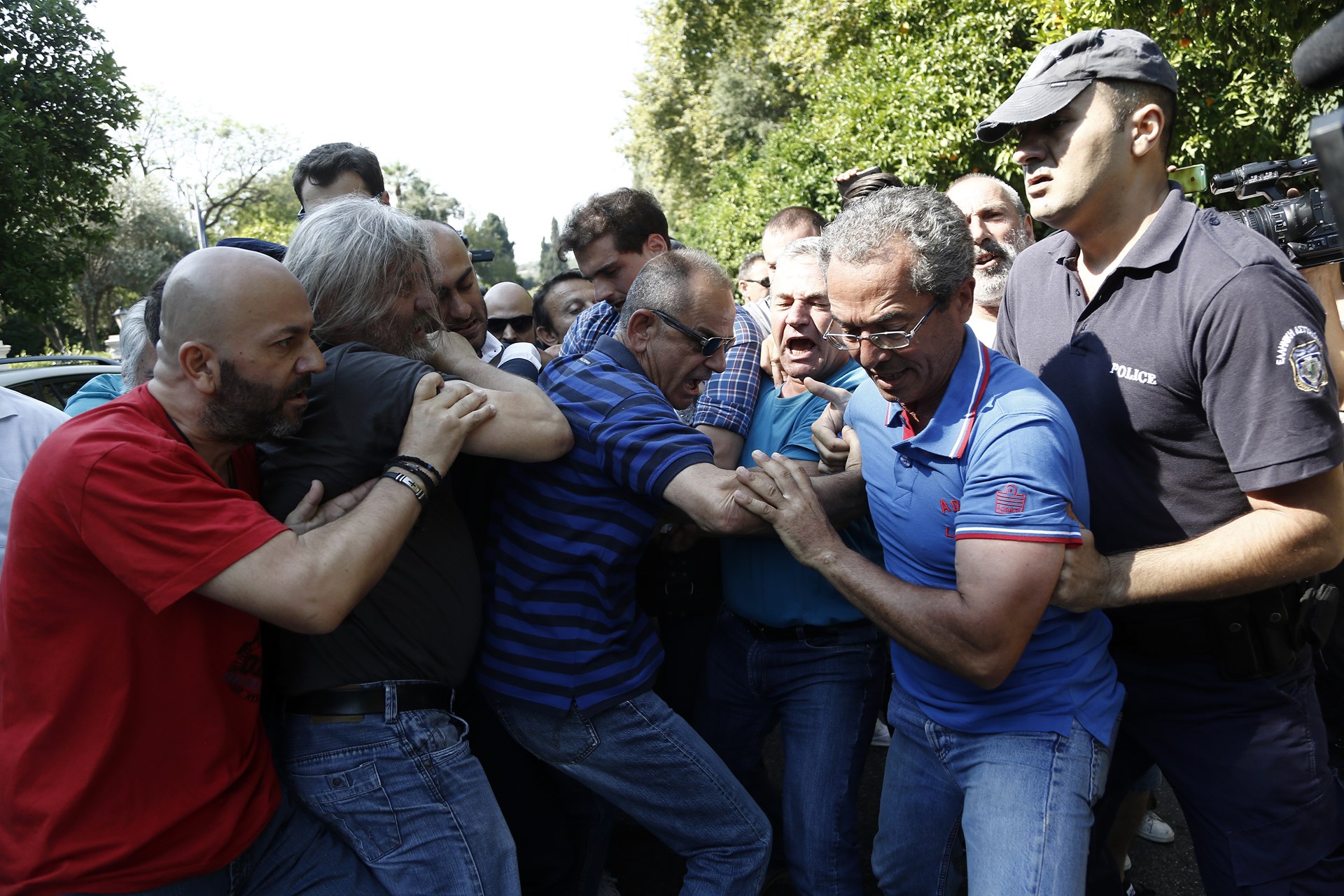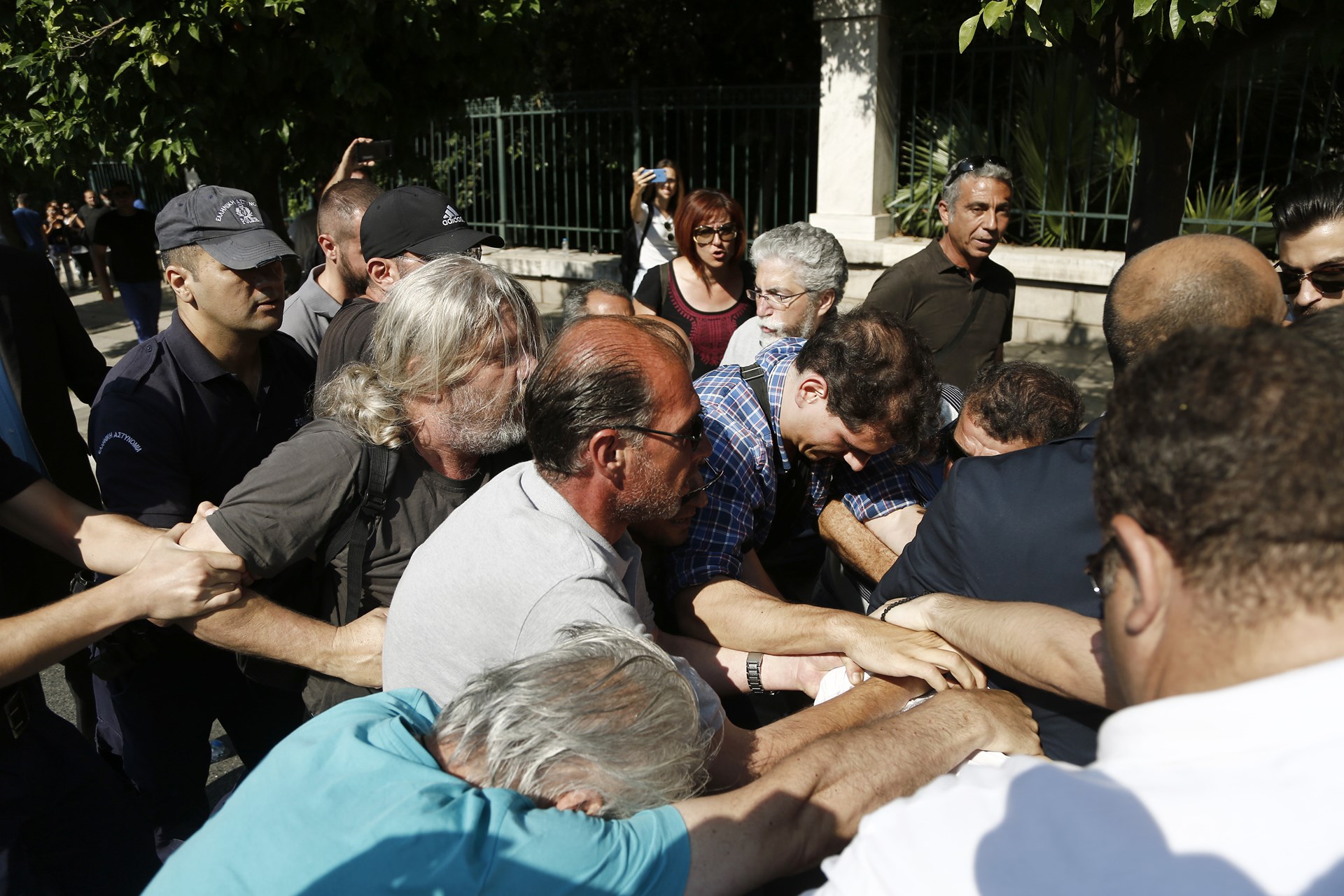 Ένταση σημειώθηκε νωρίτερα έξω από το Μέγαρο Μαξίμου, λίγο πριν από την προγραμματισμένη συνάντηση εκπροσώπων της ΠΟΕ-ΟΤΑ με τον Πρωθυπουργό Αλέξη Τσίπρα.