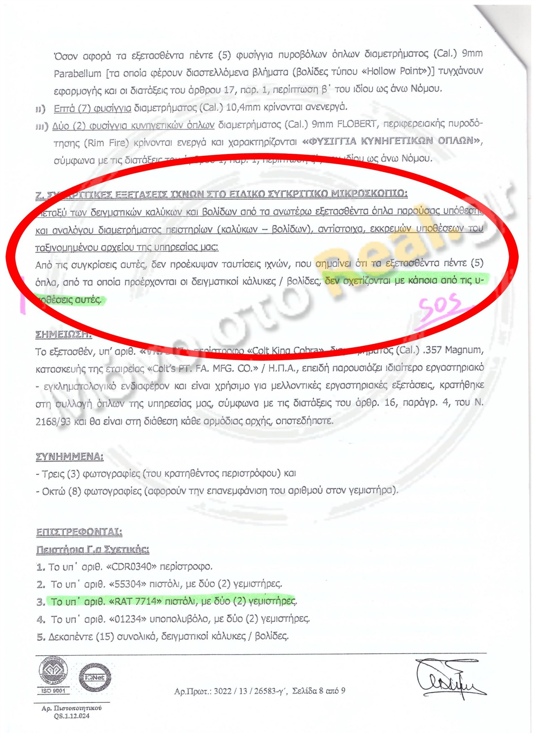 Όπως προκύπτει από την έκθεση, τα όπλα δεν είχαν καμία σχέση με τη δράση της οργάνωσης ή με οποιαδήποτε άλλη εγκληματική ενέργεια.