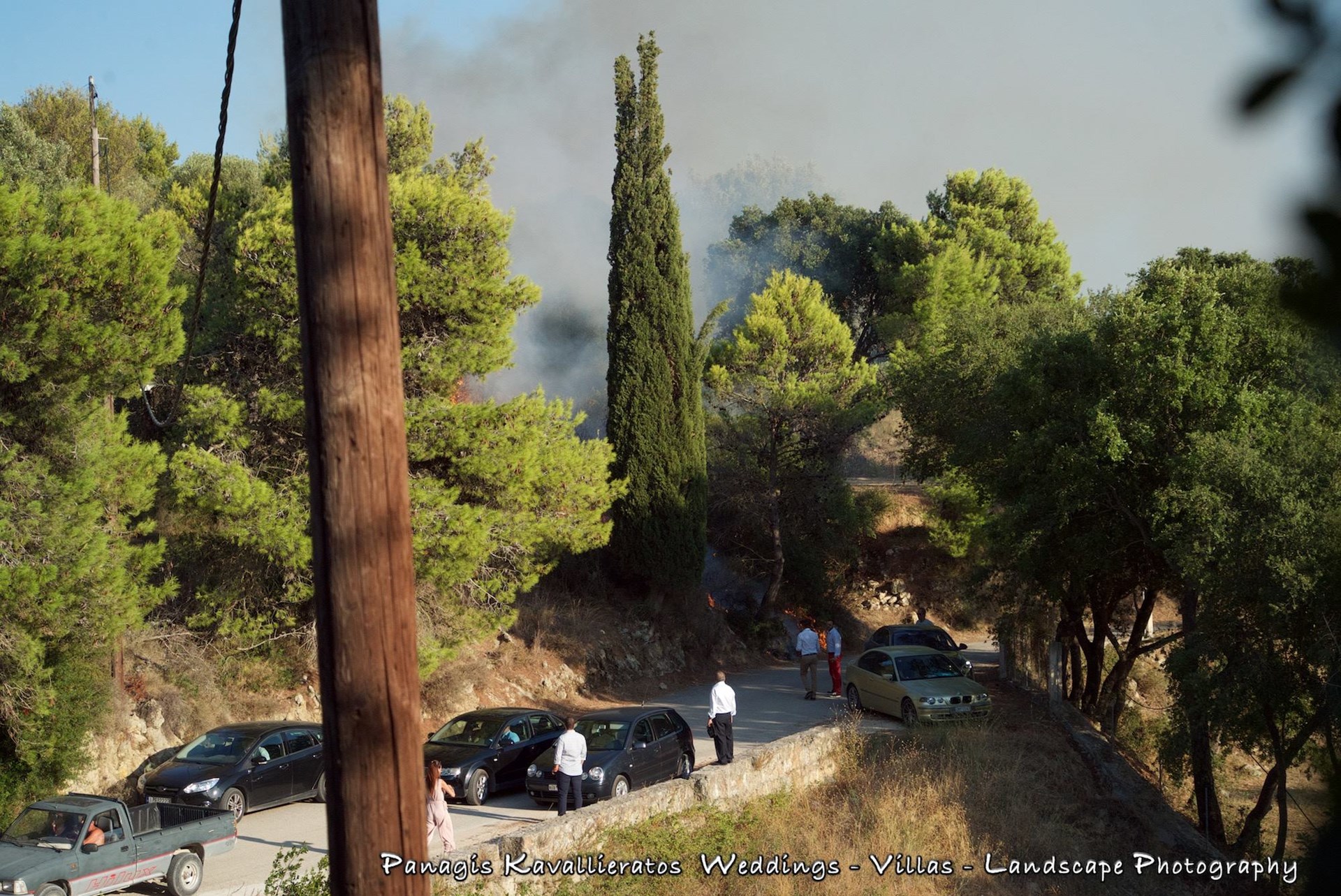 Ο γάμος έγινε κανονικά, με τους καλεσμένους να ακούν αντί για πυροτεχνήματα τις σειρήνες της πυροσβεστικής και τα πετζετέλ που έκαναν ρίψεις νερού από αέρος.