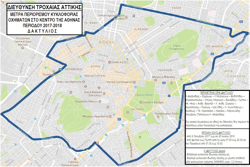 Στις οριακές λεωφόρους και οδούς του δακτυλίου δεν ισχύουν τα παραπάνω μέτρα περιορισμού της κυκλοφορίας.