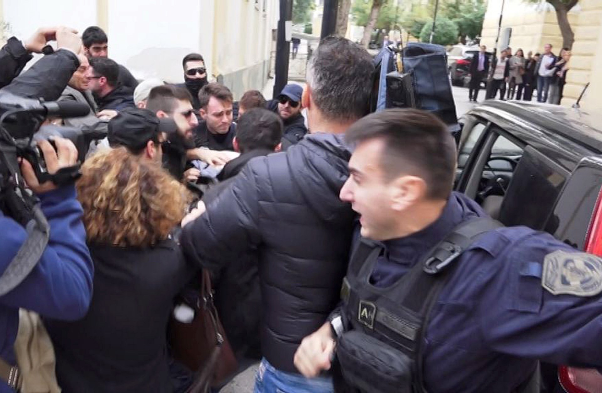 Συγκεντρωμένοι έξω από το κτίριο των ανακριτών, μόλις είδαν τη μεταγωγή του κατηγορούμενου, άρχισαν να τον βρίζουν, φωνάζοντας «αλήτη, δολοφόνε» και να τρέχουν απειλητικά προς το μέρος του.