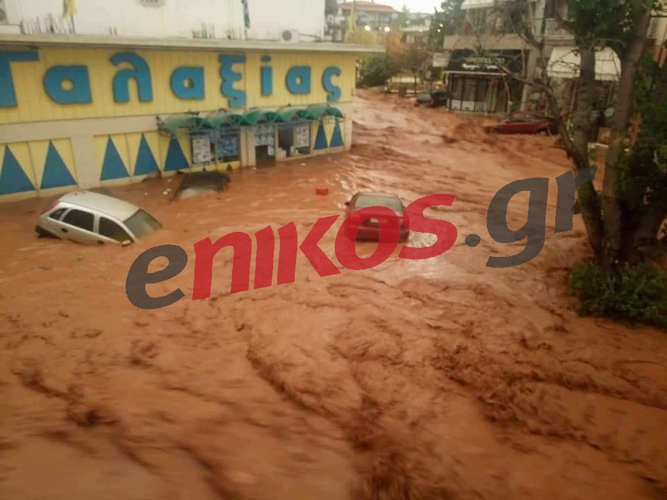 Σε ποτάμια έχουν μετατραπεί οι δρόμοι στη Νέα Πέραμο, όπως φαίνεται στα βίντεο και τις φωτογραφίες που έστειλα αναγνώστες του enikos.gr.