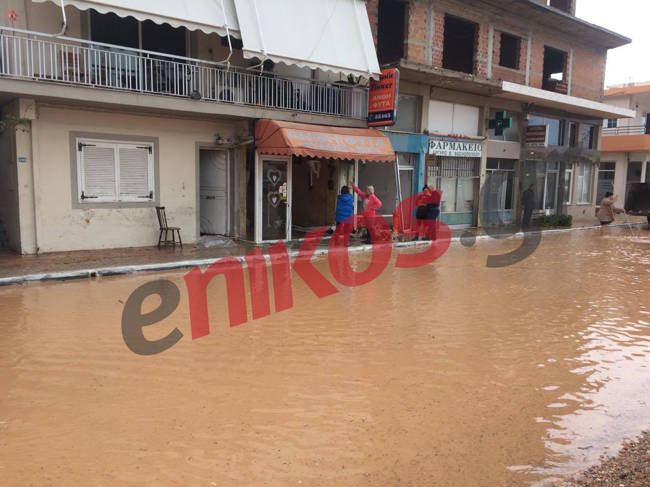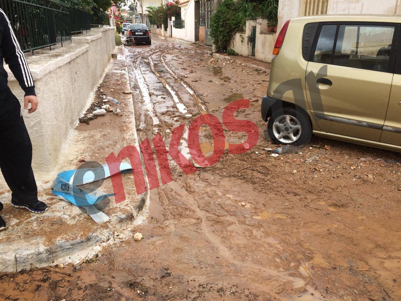 Μεγάλες καταστροφές έχουν προκληθεί στη Μάνδρα.Τα ορμητικά νερά που κατεβαίνουν από το βουνό έχουν κόψει δρόμους, γκρέμισαν μάντρες σπιτιών, παρέσυραν αυτοκίνητα και έχουν πλημμυρίσει σπίτια και καταστήματα, ενώ τα νερά έχουν φτάσει σε πολύ μεγάλο ύψος.