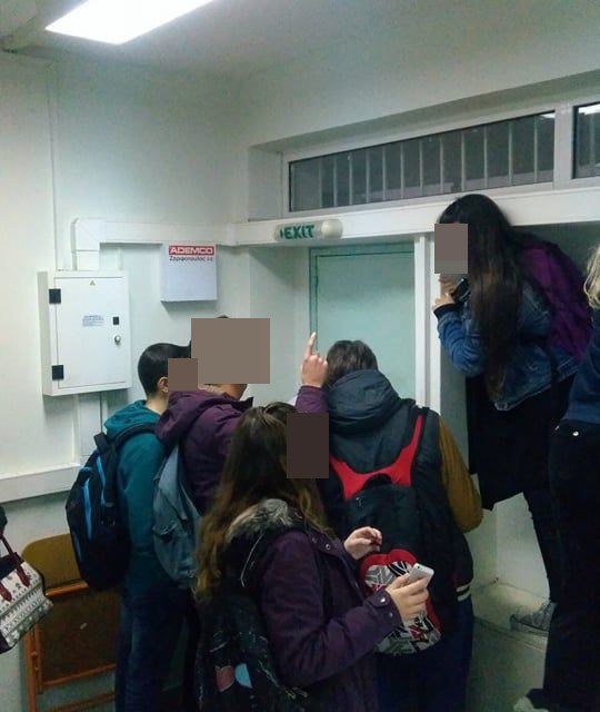 Σύμφωνα με μαρτυρίες, μόλις χτύπησε το τελευταίο κουδούνι και ενώ οι μαθητές και η καθηγήτρια ετοιμάζονταν να φύγουν, διαπίστωσαν πως η πόρτα δεν άνοιγε. Προσπαθούσαν για αρκετά λεπτά μήπως και καταφέρουν να την ανοίξουν αλλά μάταιος κόπος. Η κλειδαριά της πόρτας είχε χαλάσει και οι προσπάθειές τους επί ένα τέταρτο περίπου, έπεφταν στο κενό.