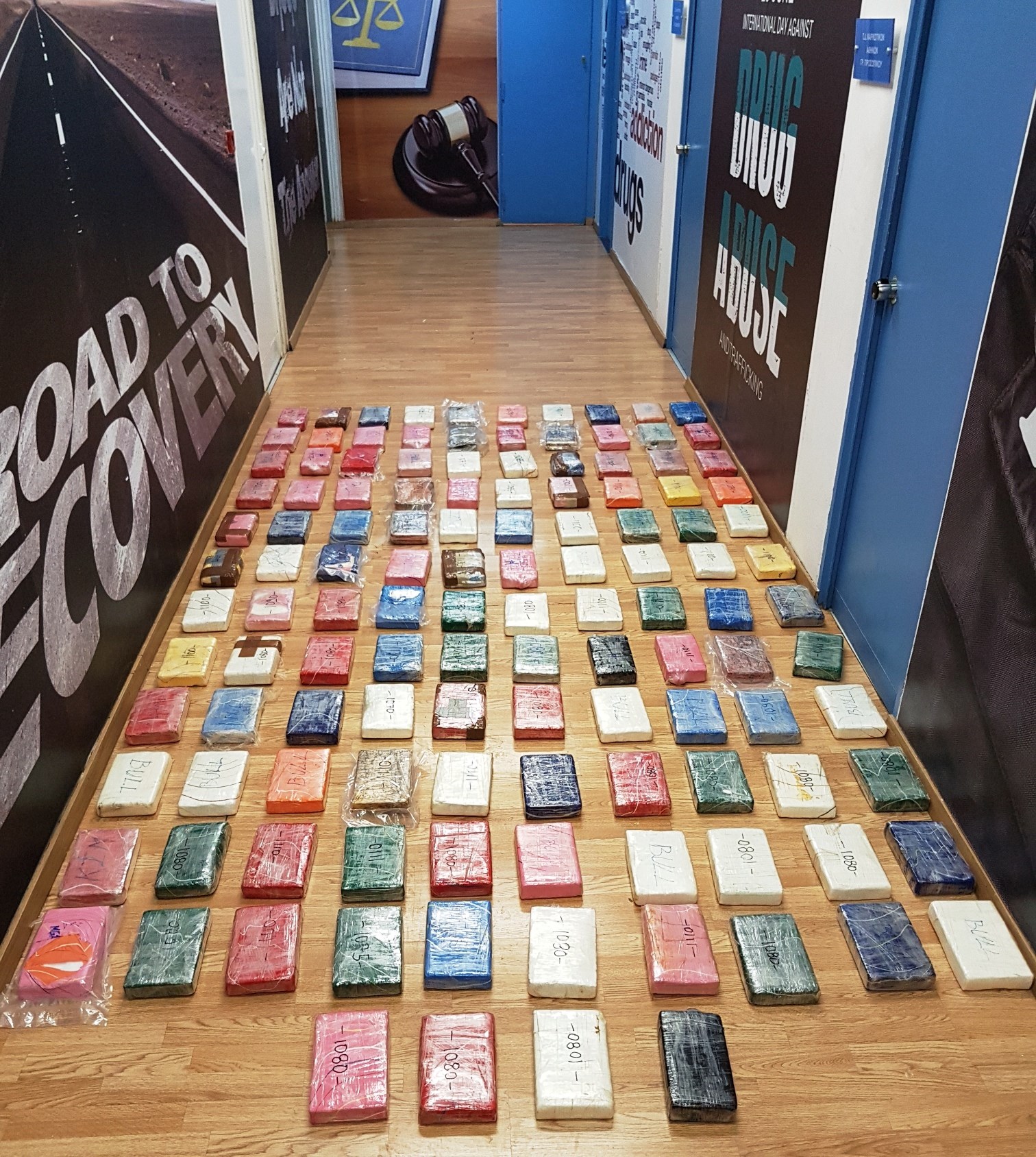 Στο διαμέρισμα, το οποίο χρησιμοποιούσε ως χώρο αποθήκευσης και φύλαξης των ναρκωτικών, οι αστυνομικοί βρήκαν και κατάσχεσαν 124 συσκευασίες της κοκαΐνης, οι οποίες έφεραν διάφορα λογότυπα ποιοτήτων κοκαΐνης, υποδηλωτικών της προελεύσεως εγκληματικών οργανώσεων της Λατινικής Αμερικής.