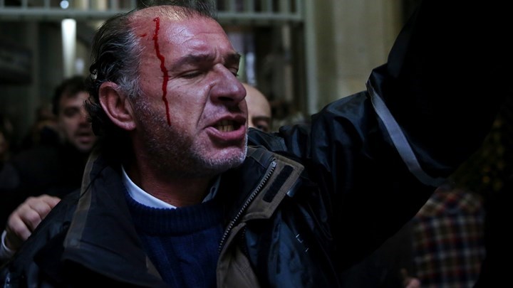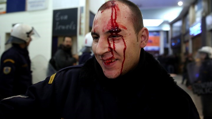 Ένας αστυνομικός τραυματίστηκε στο κεφάλι, ενώ ελαφρά τραυματίστηκε και ένας διαδηλωτής.